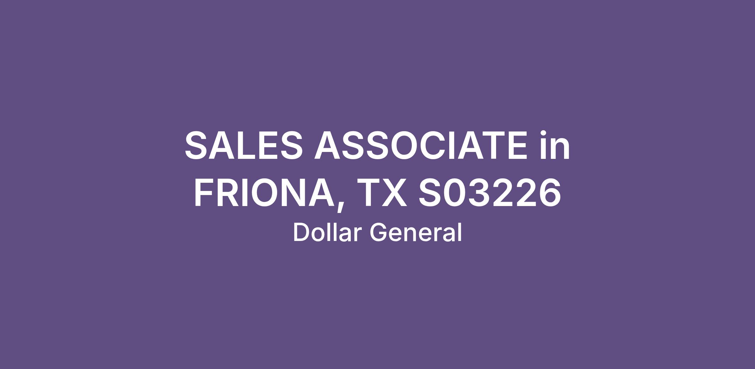 SALES ASSOCIATE in FRIONA, TX S03226