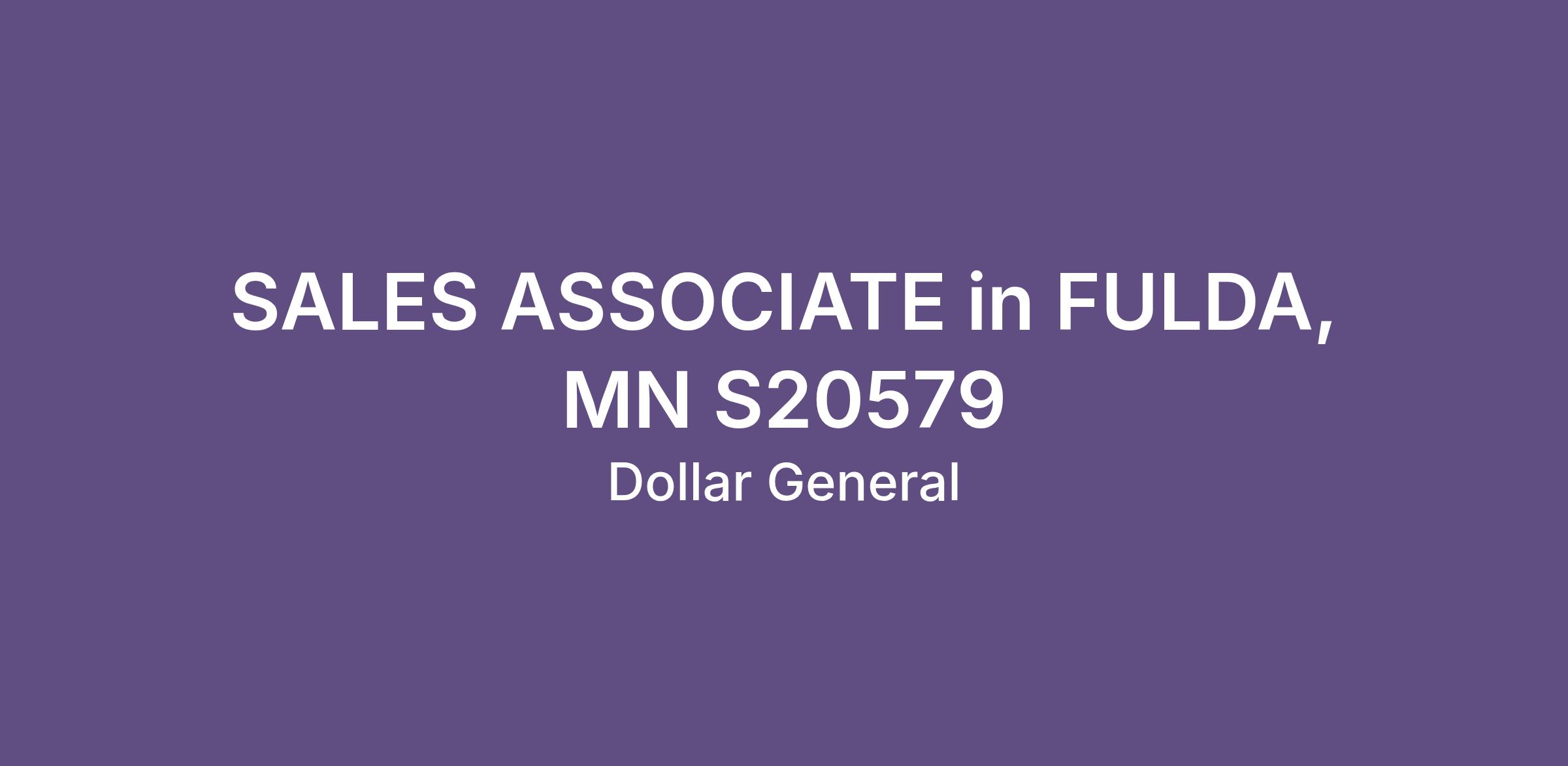 SALES ASSOCIATE in FULDA, MN S20579
