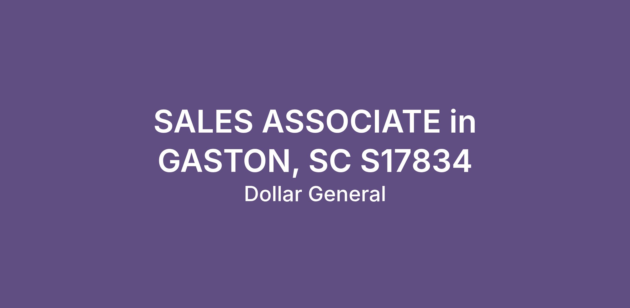SALES ASSOCIATE in GASTON, SC S17834