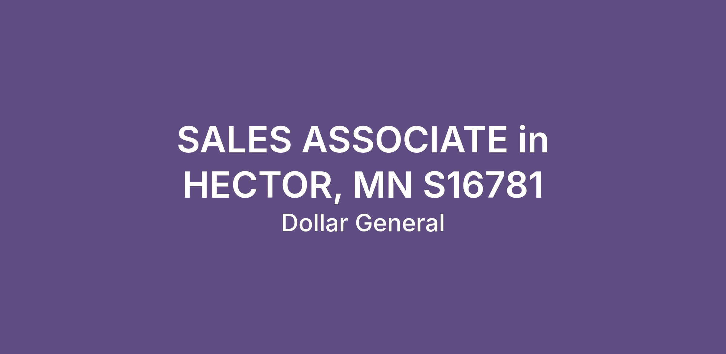 SALES ASSOCIATE in HECTOR, MN S16781