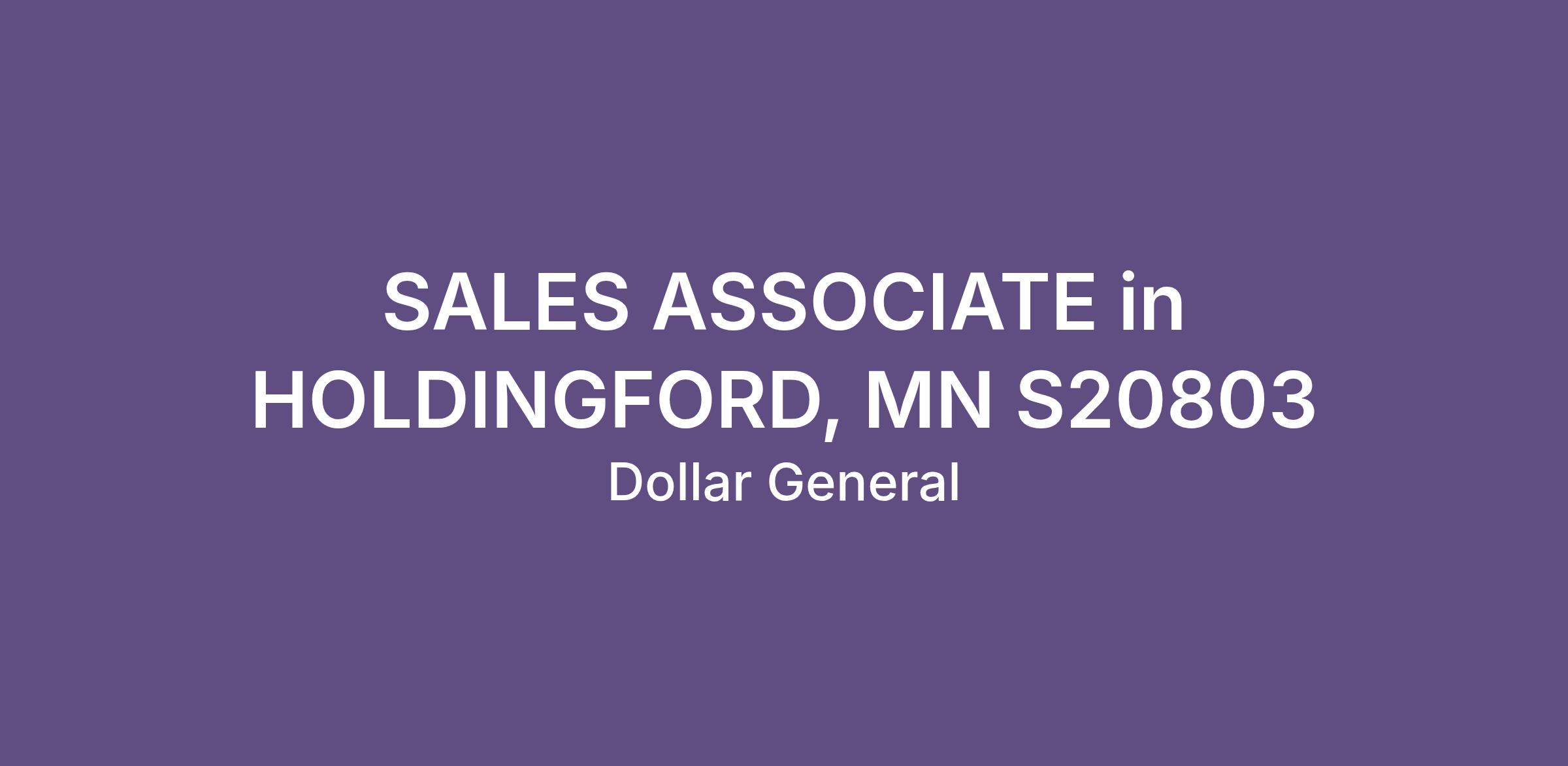 SALES ASSOCIATE in HOLDINGFORD, MN S20803