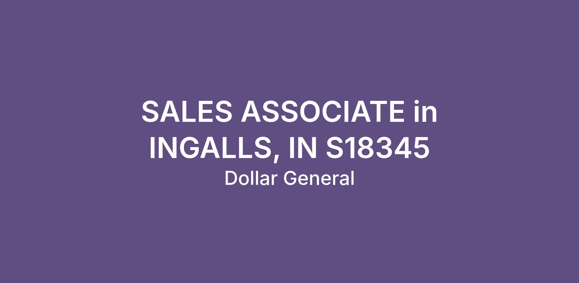 SALES ASSOCIATE in INGALLS, IN S18345