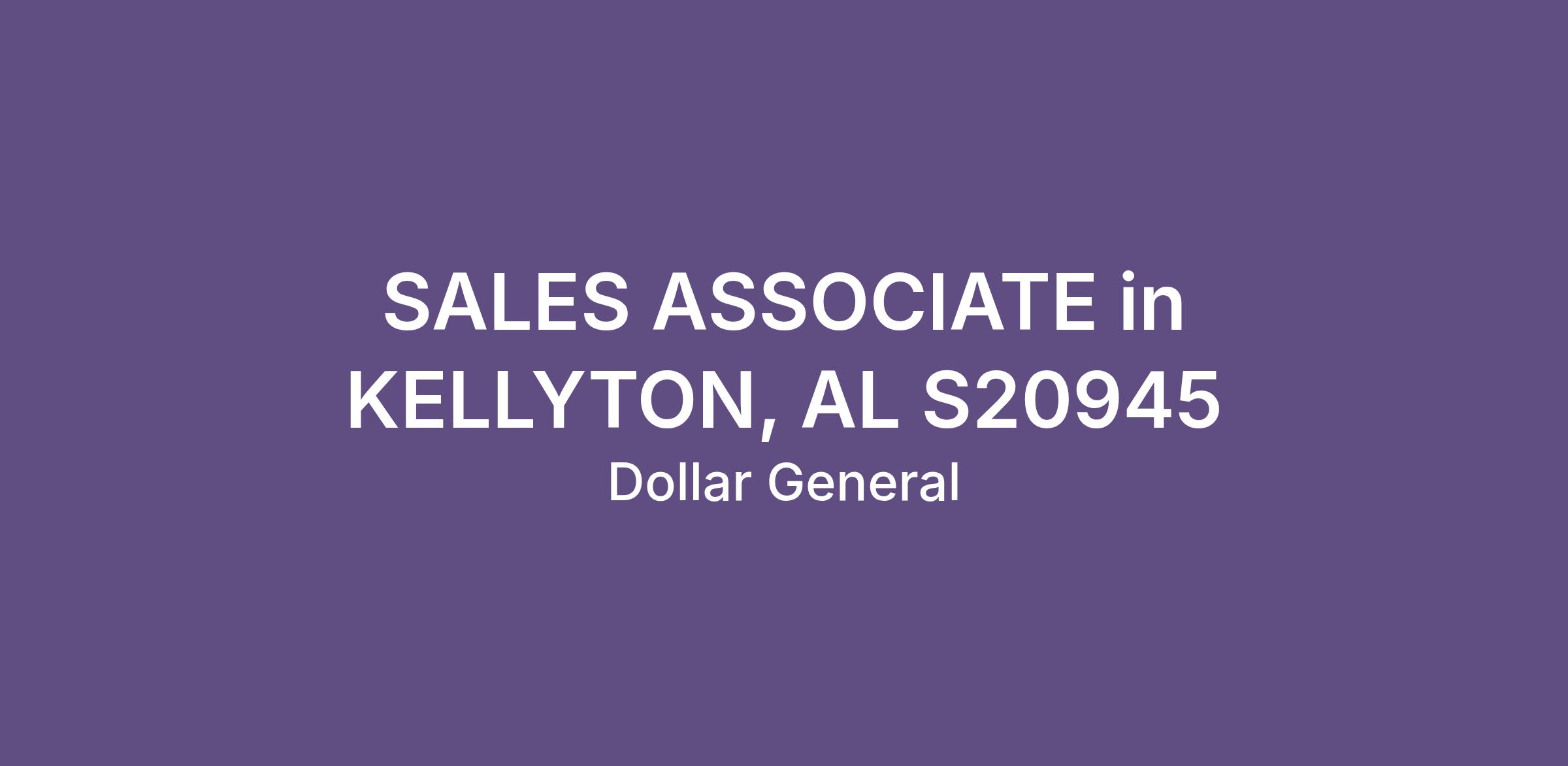 SALES ASSOCIATE in KELLYTON, AL S20945