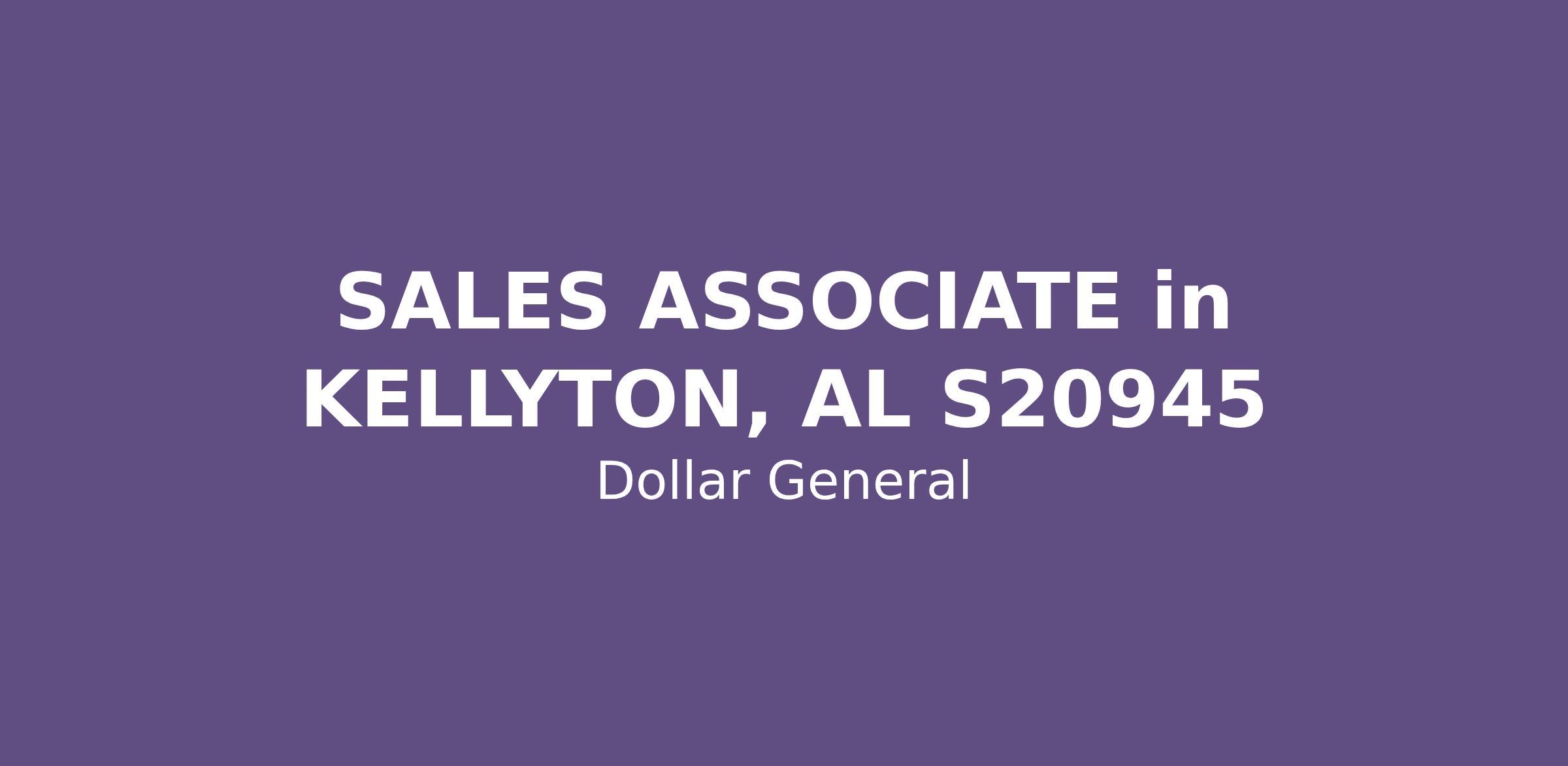 SALES ASSOCIATE in KELLYTON, AL S20945