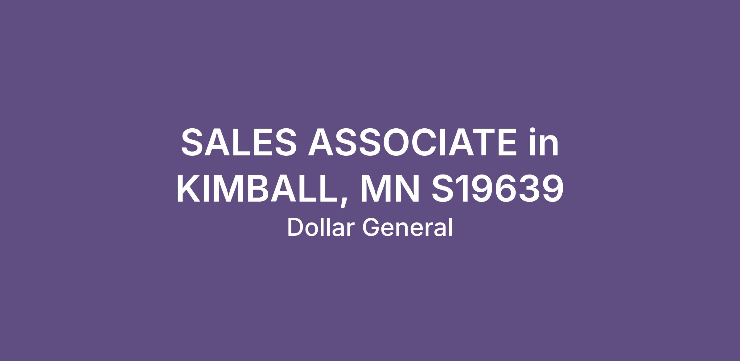 SALES ASSOCIATE in KIMBALL, MN S19639