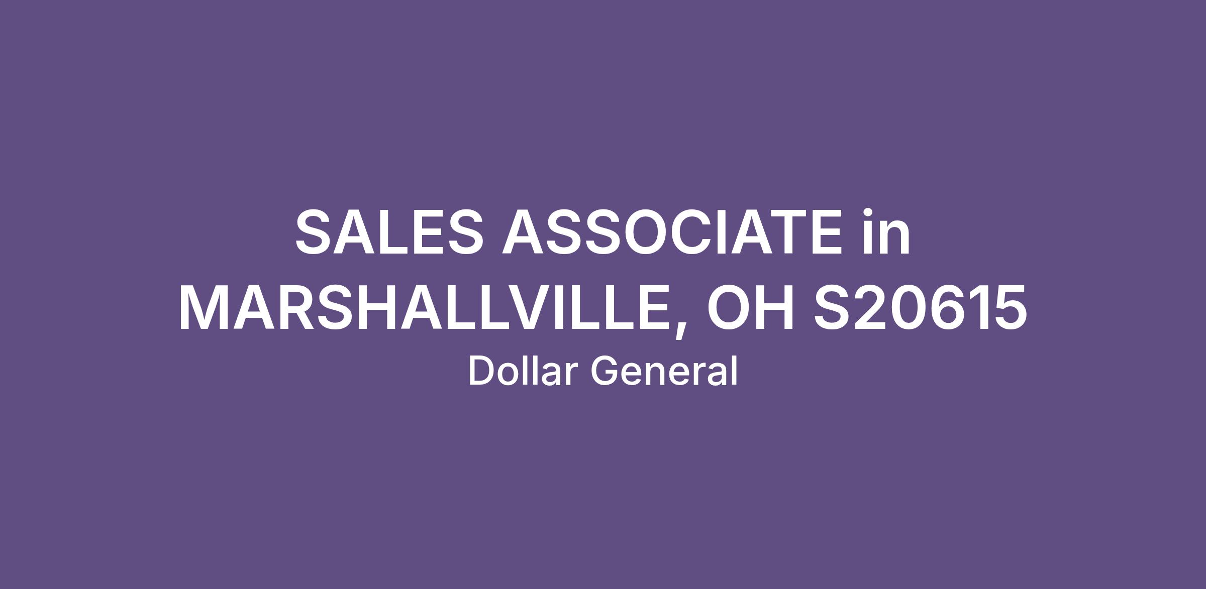 SALES ASSOCIATE in MARSHALLVILLE, OH S20615