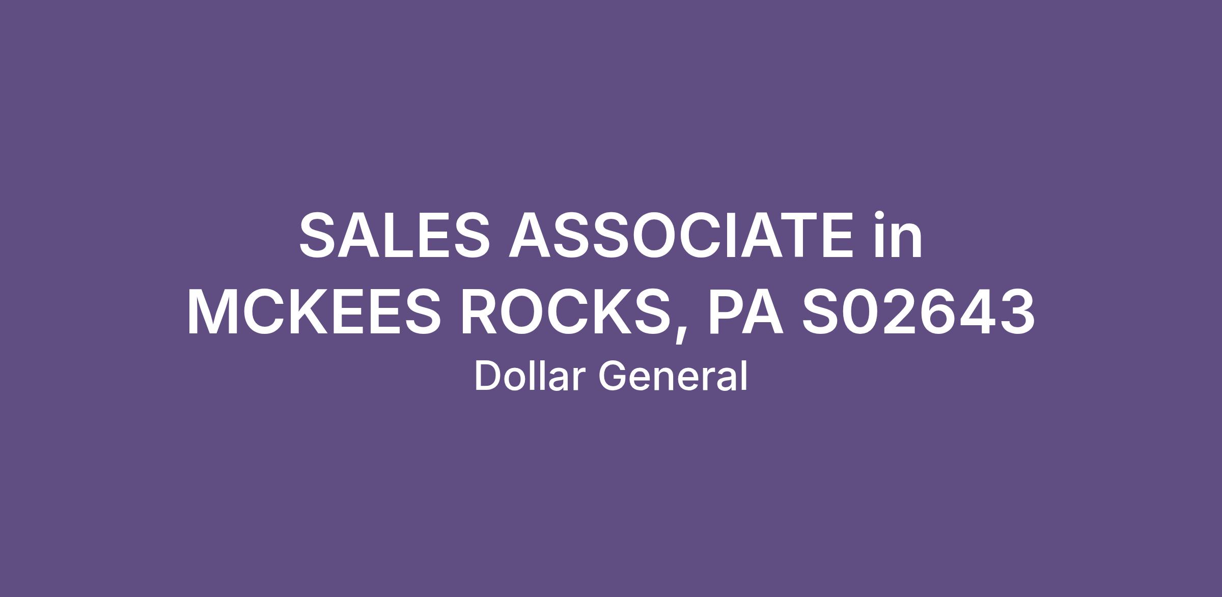 SALES ASSOCIATE in MCKEES ROCKS, PA S02643