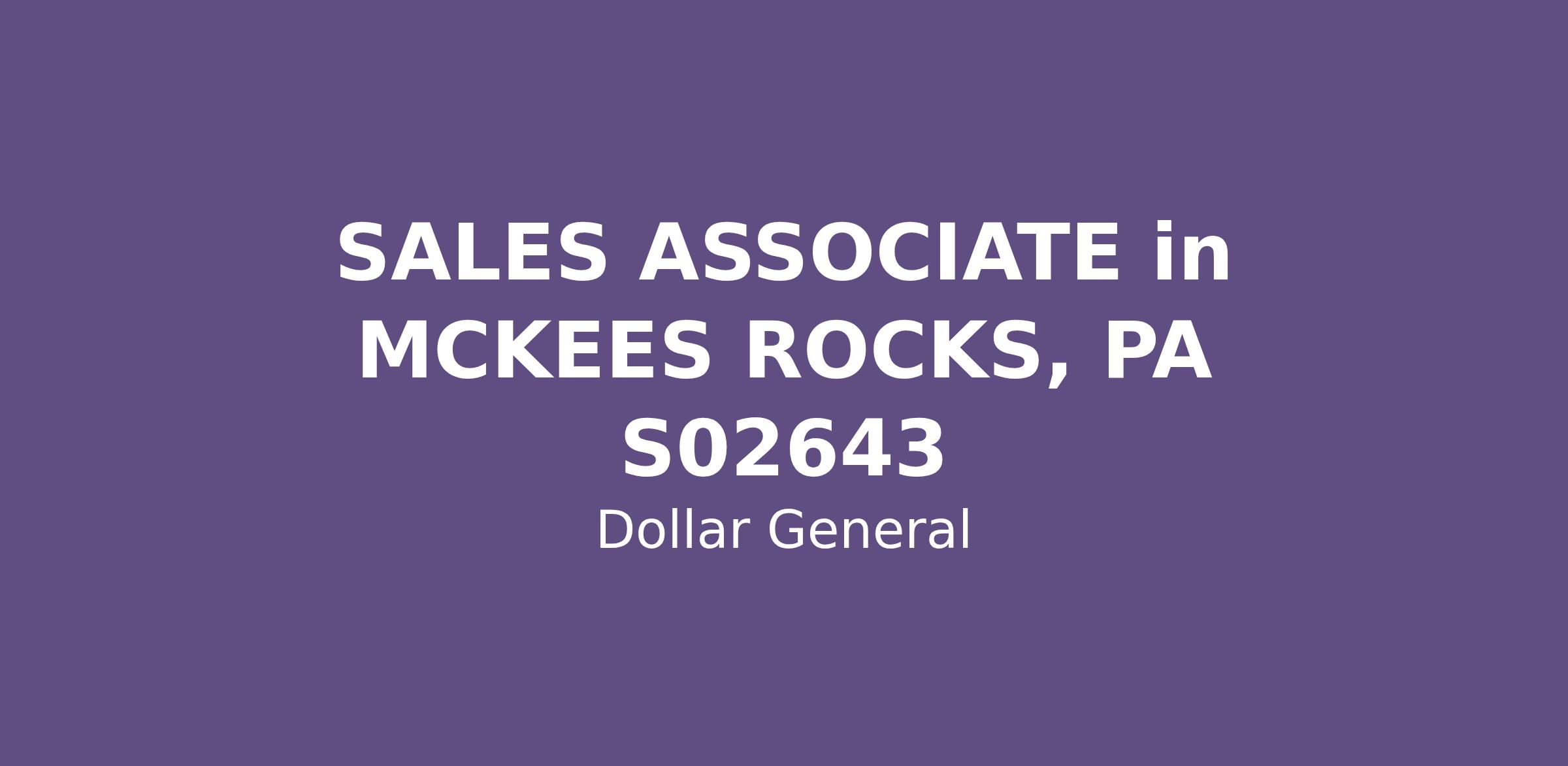 SALES ASSOCIATE in MCKEES ROCKS, PA S02643