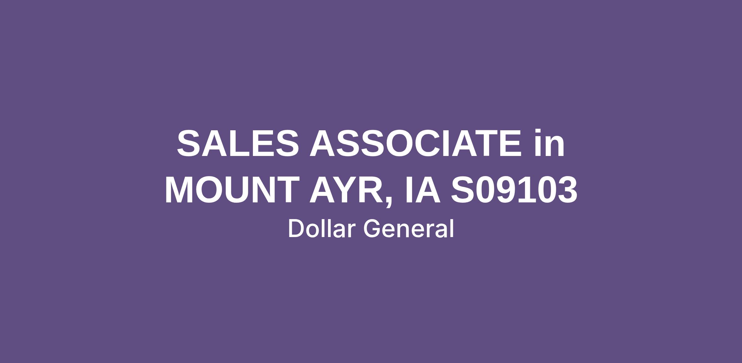 SALES ASSOCIATE in MOUNT AYR, IA S09103