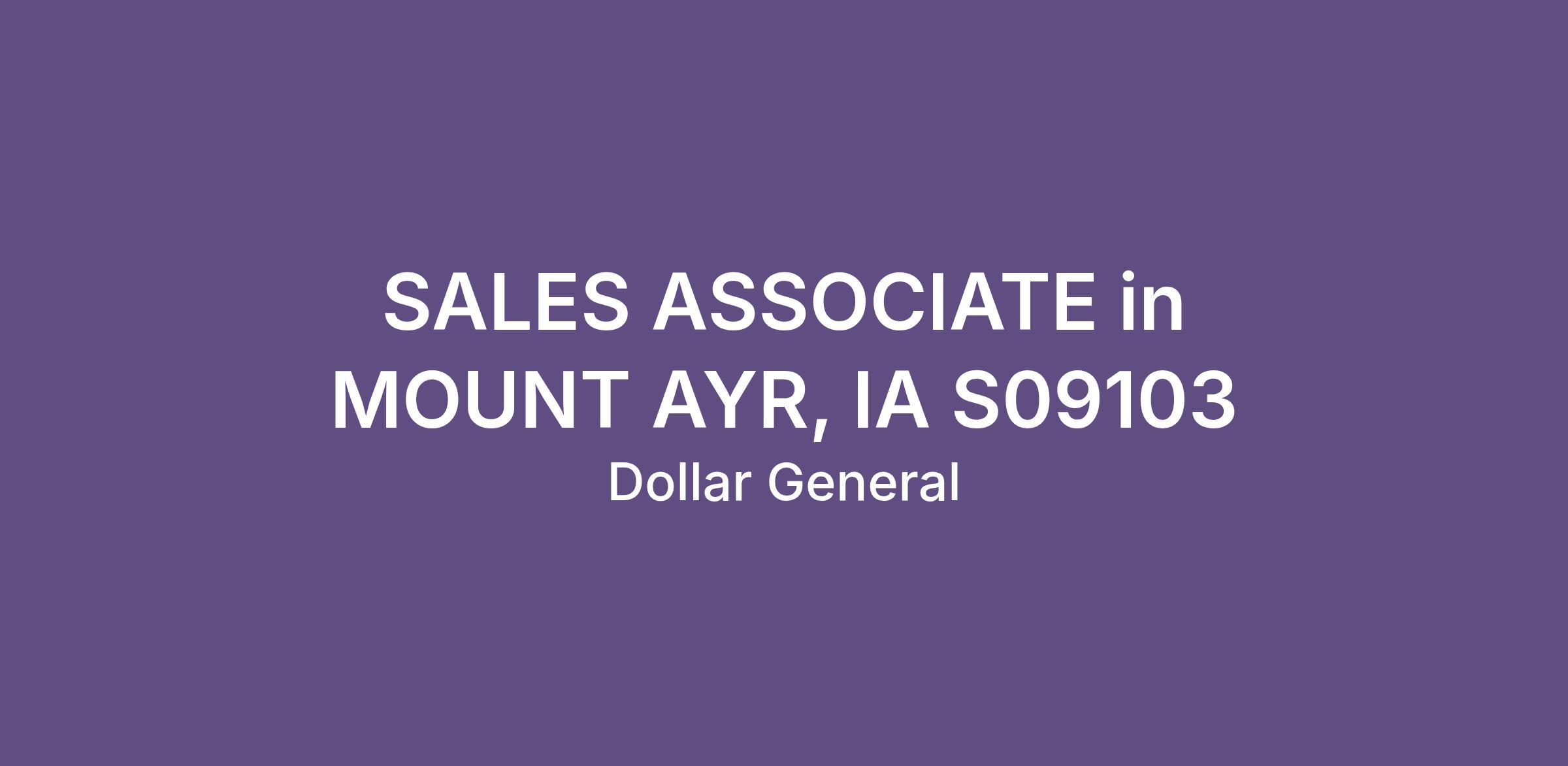 SALES ASSOCIATE in MOUNT AYR, IA S09103