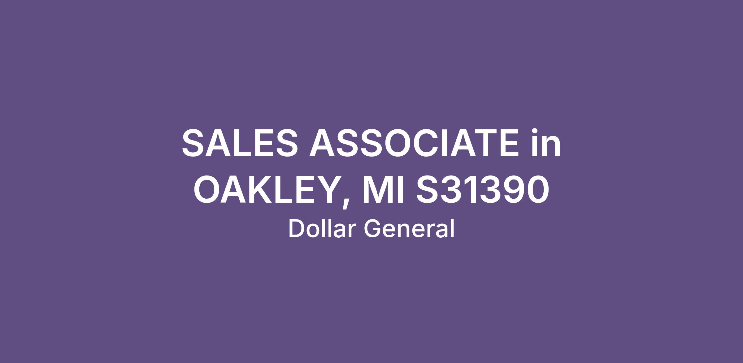 SALES ASSOCIATE in OAKLEY, MI S31390