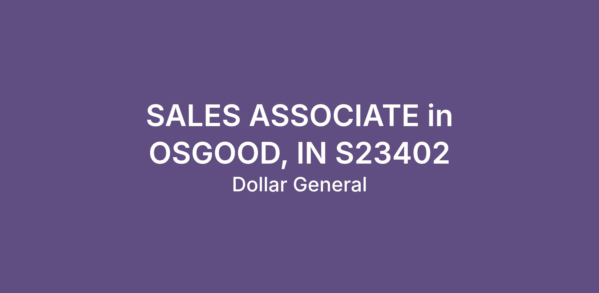 SALES ASSOCIATE in OSGOOD, IN S23402