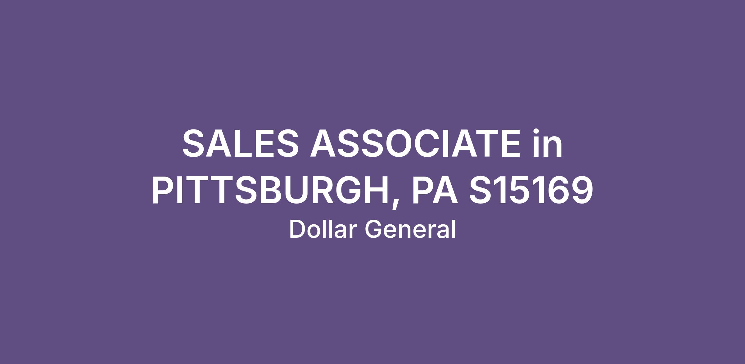 SALES ASSOCIATE in PITTSBURGH, PA S15169