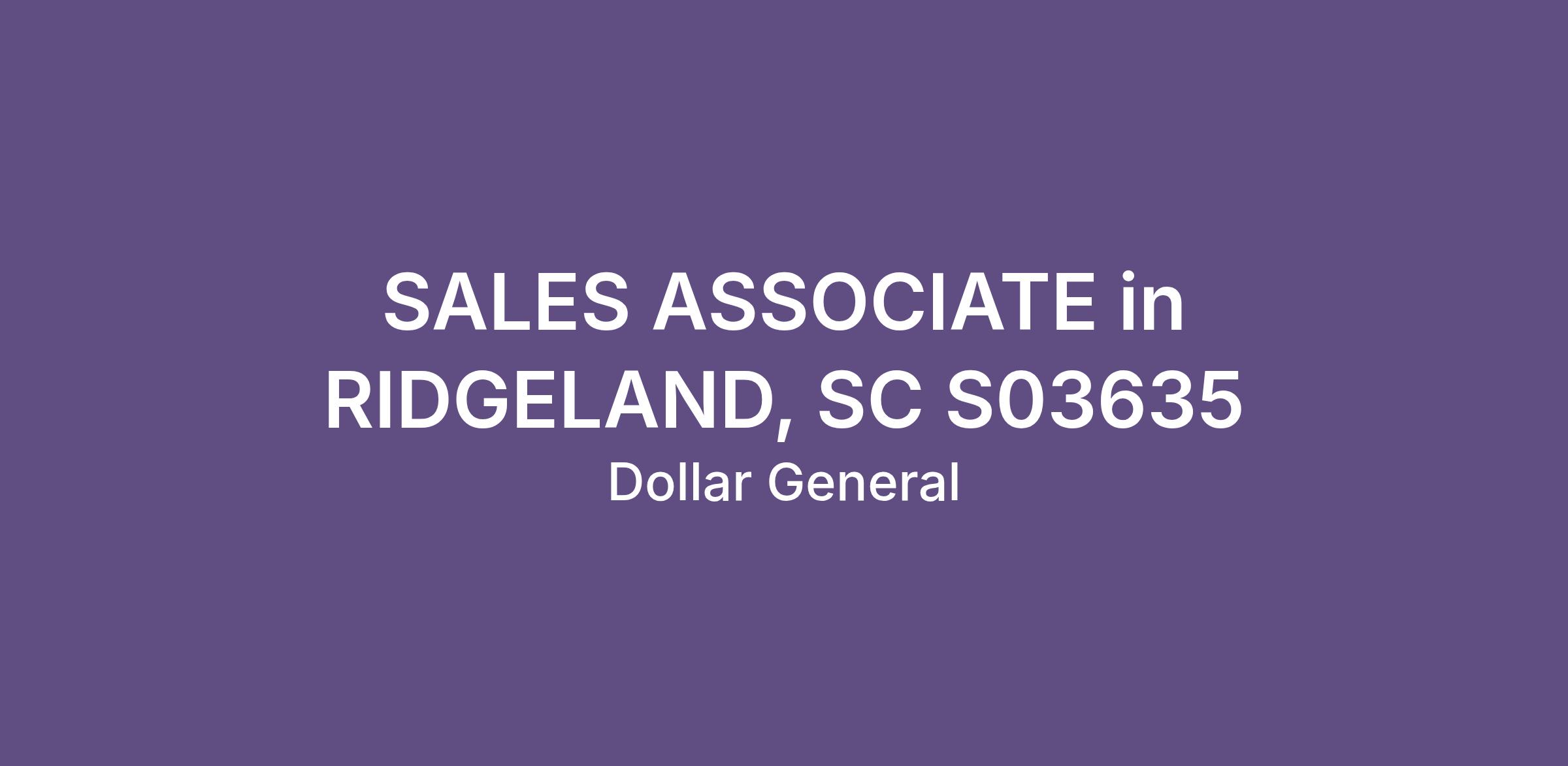 SALES ASSOCIATE in RIDGELAND, SC S03635