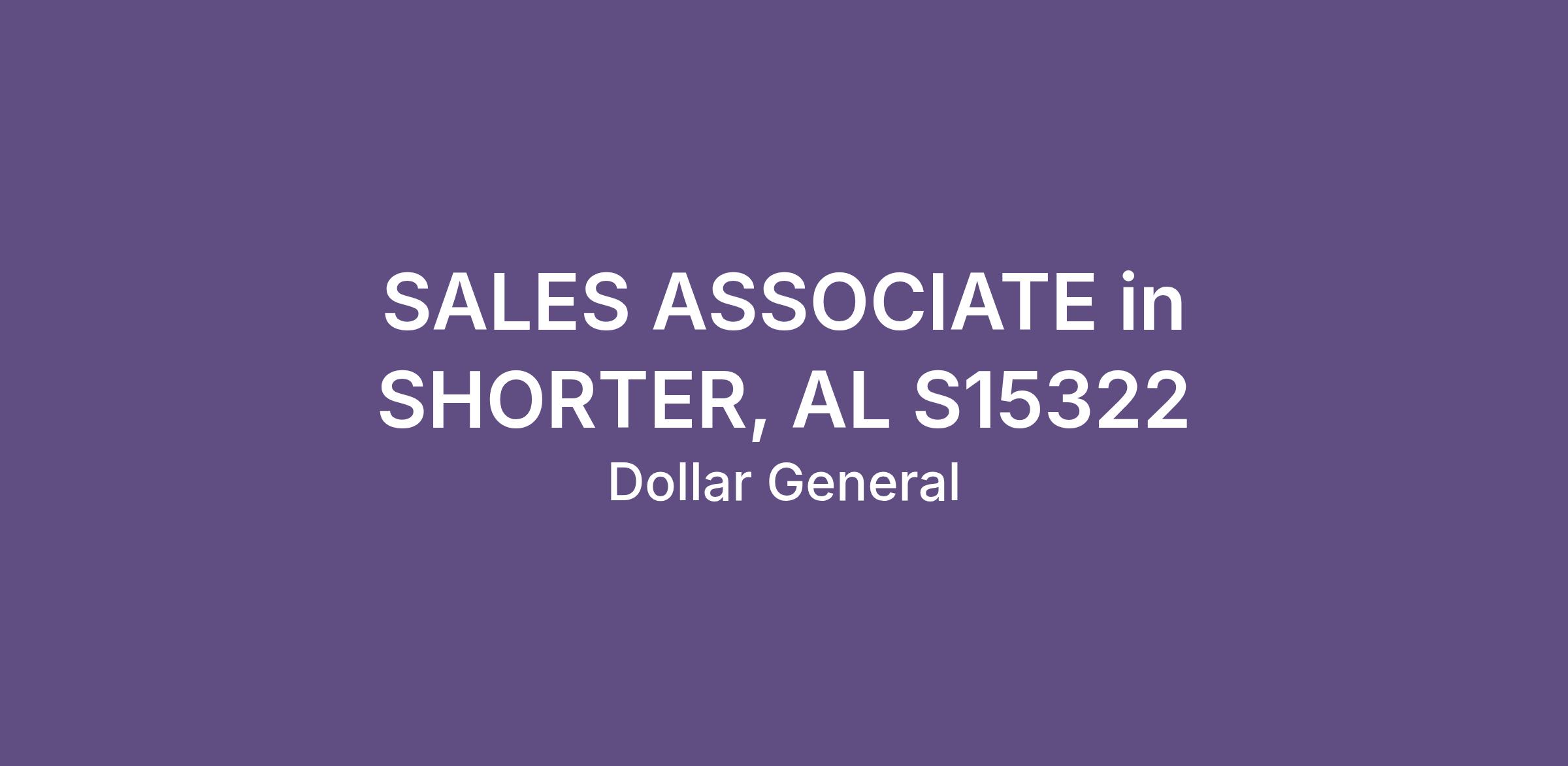 SALES ASSOCIATE in SHORTER, AL S15322