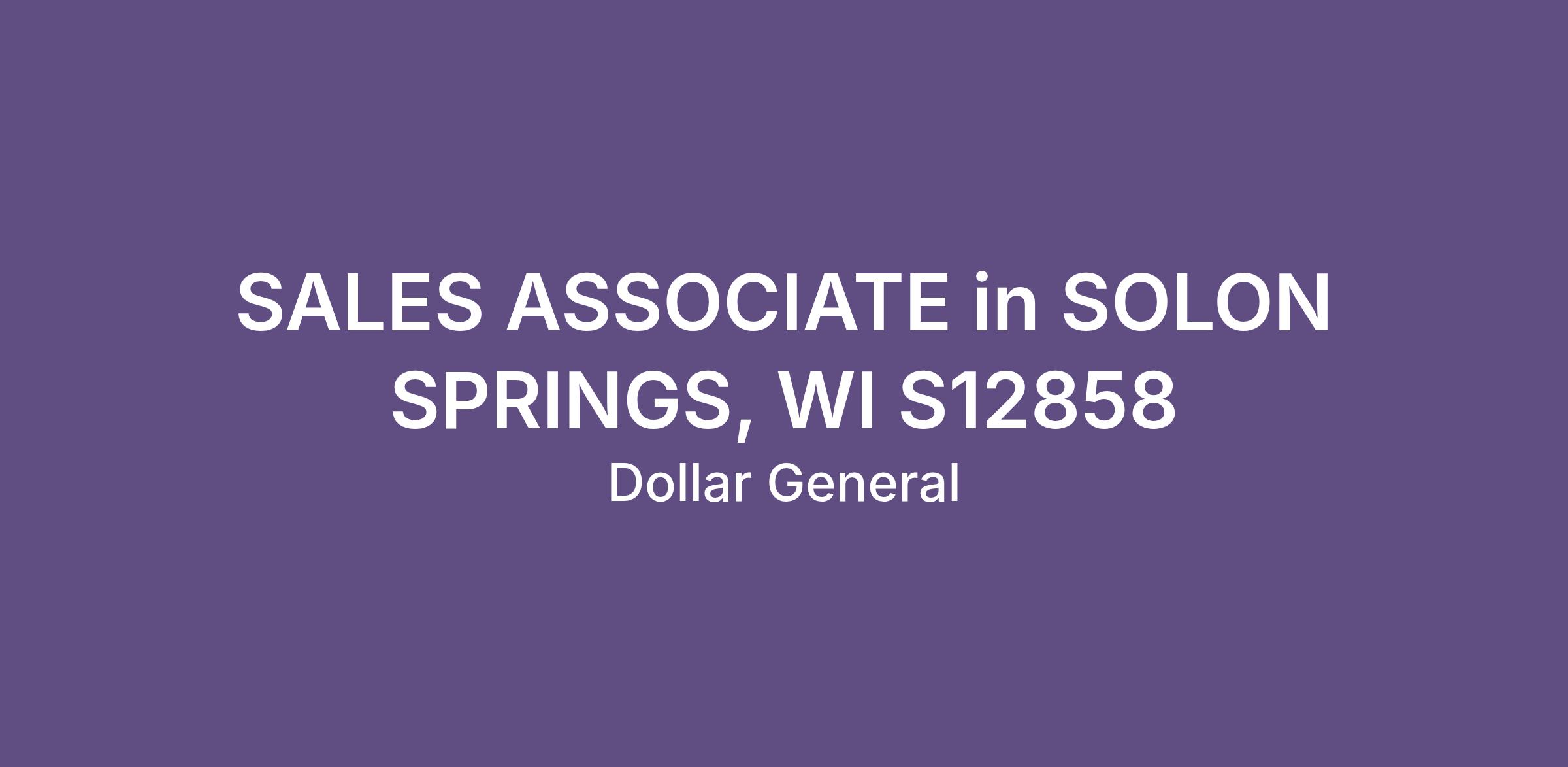 SALES ASSOCIATE in SOLON SPRINGS, WI S12858