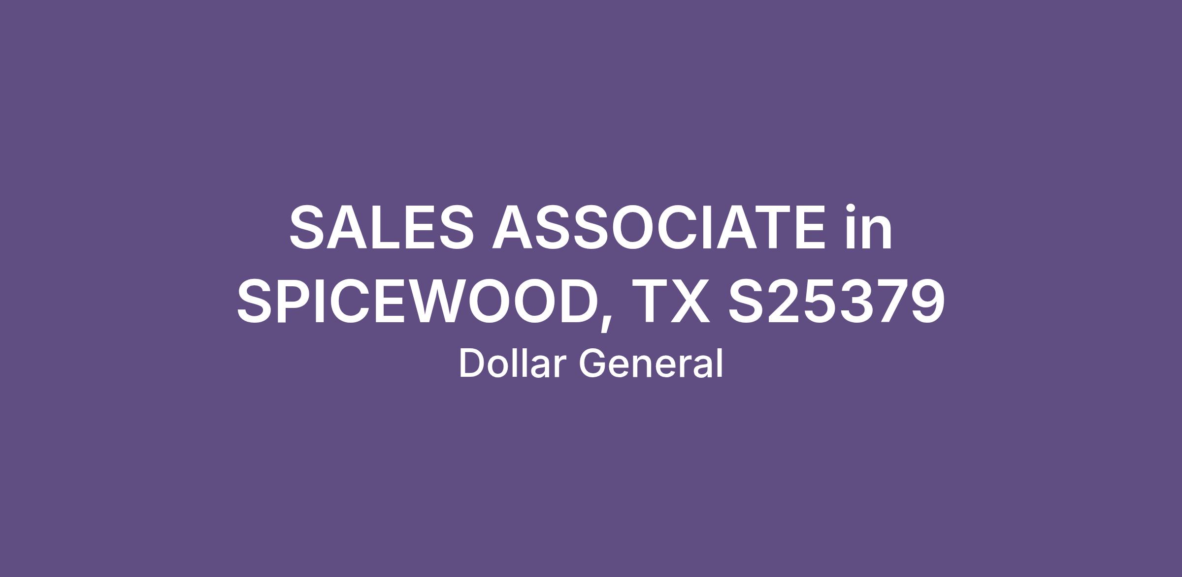 SALES ASSOCIATE in SPICEWOOD, TX S25379