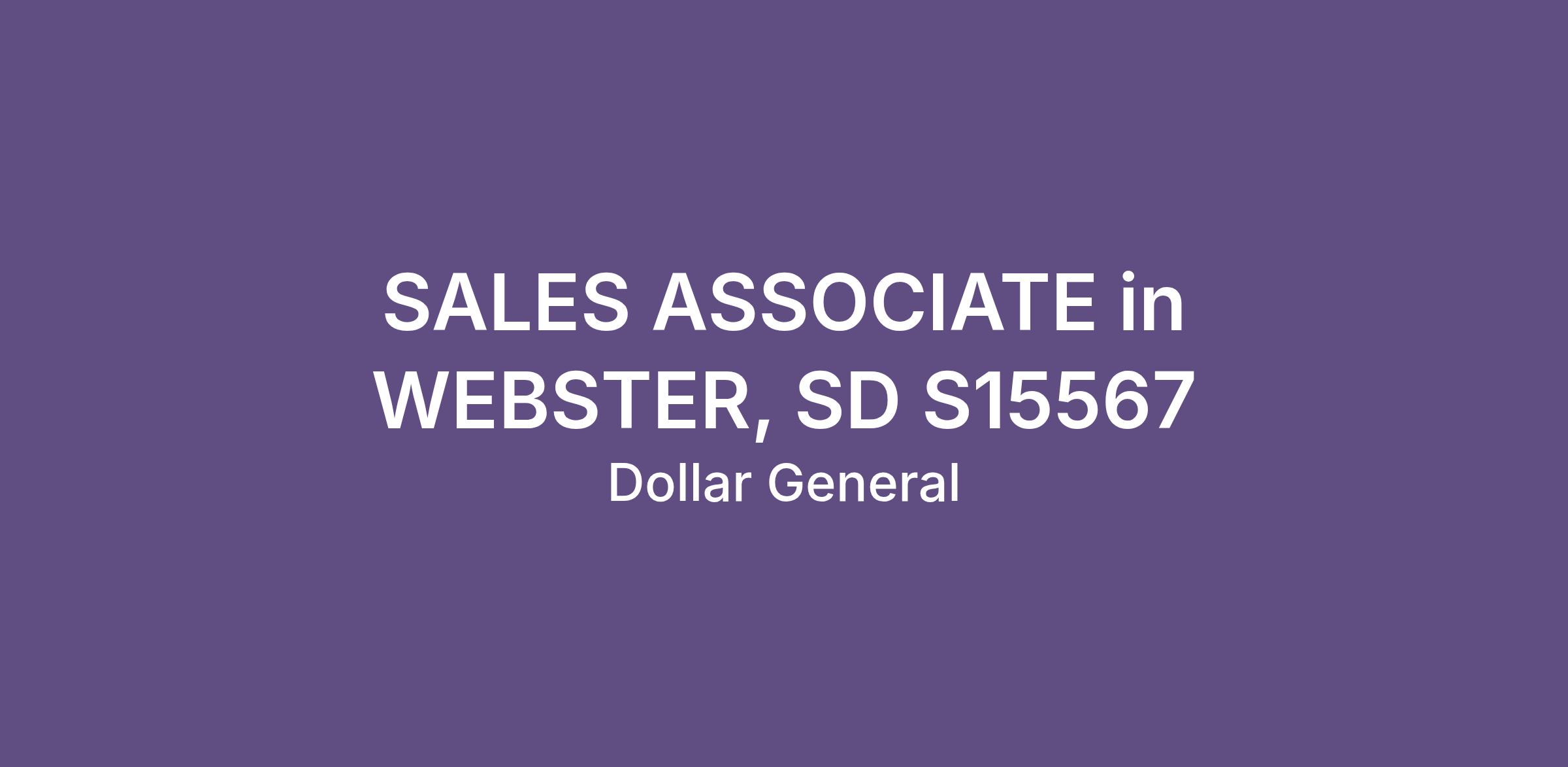 SALES ASSOCIATE in WEBSTER, SD S15567