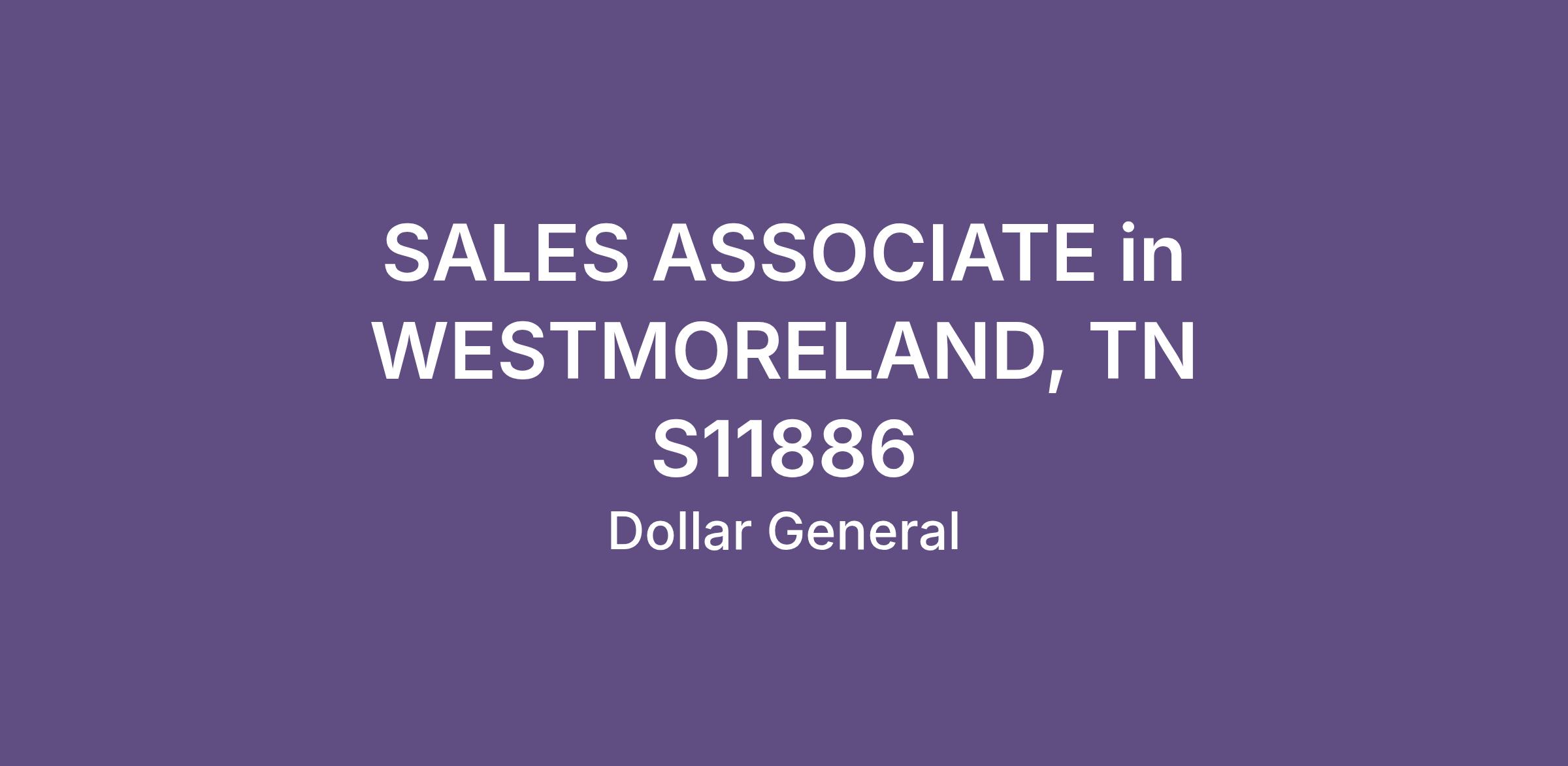 SALES ASSOCIATE in WESTMORELAND, TN S11886