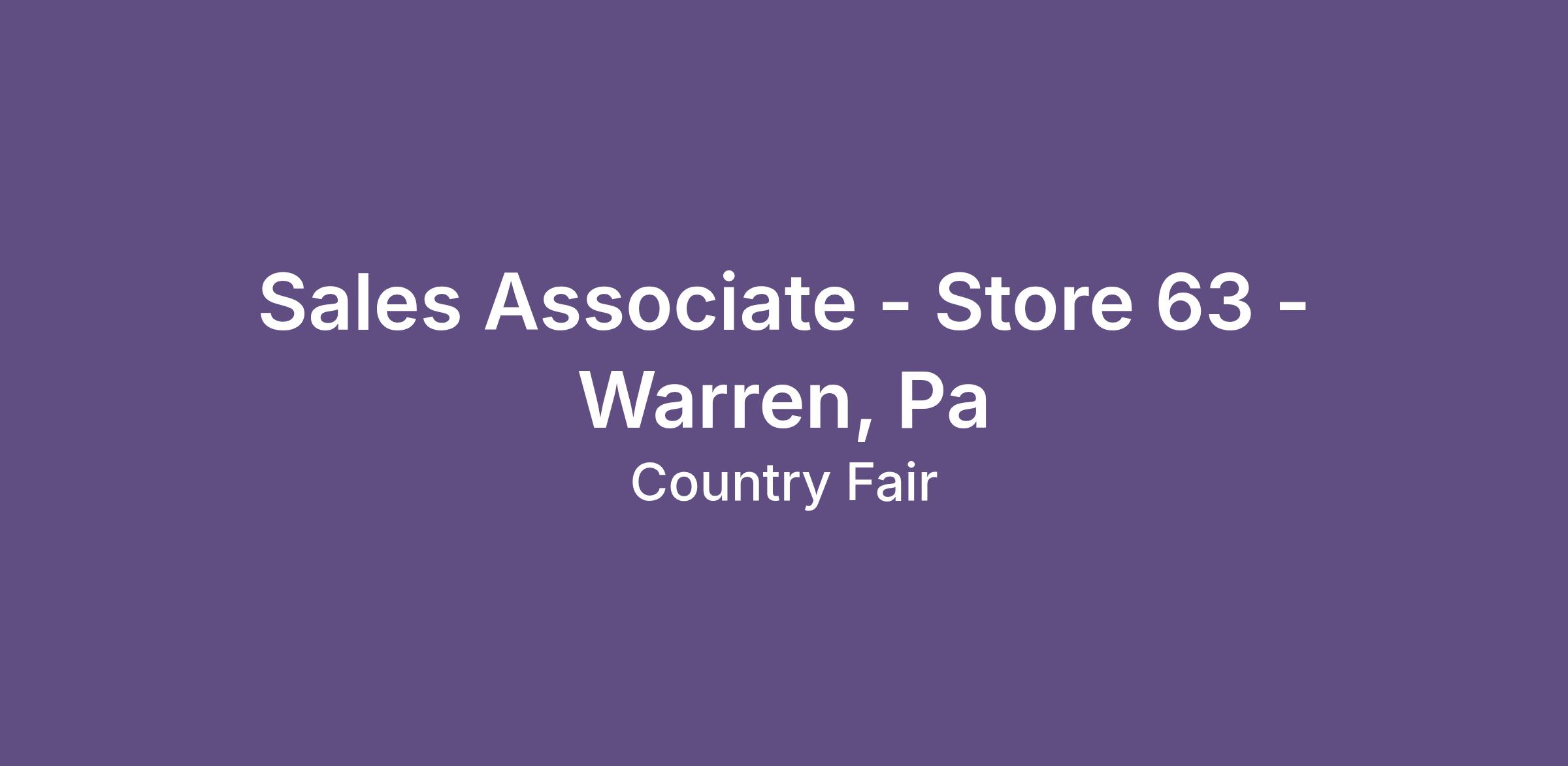 The most important people at Country Fair are the ones who serve our customers on a day to day basis.  That’s not just our belief; that’s our way of life.  Sales Associates are our first contact with our valued customers and perform a wide variety of duties to deliver on our mission statement: “Country Fair Cares - about its Customers, its Team and its Community.” Our mission, combined with an excellent culture for training, has garnered us recognition as "Best Places to Work" on multiple occasions.