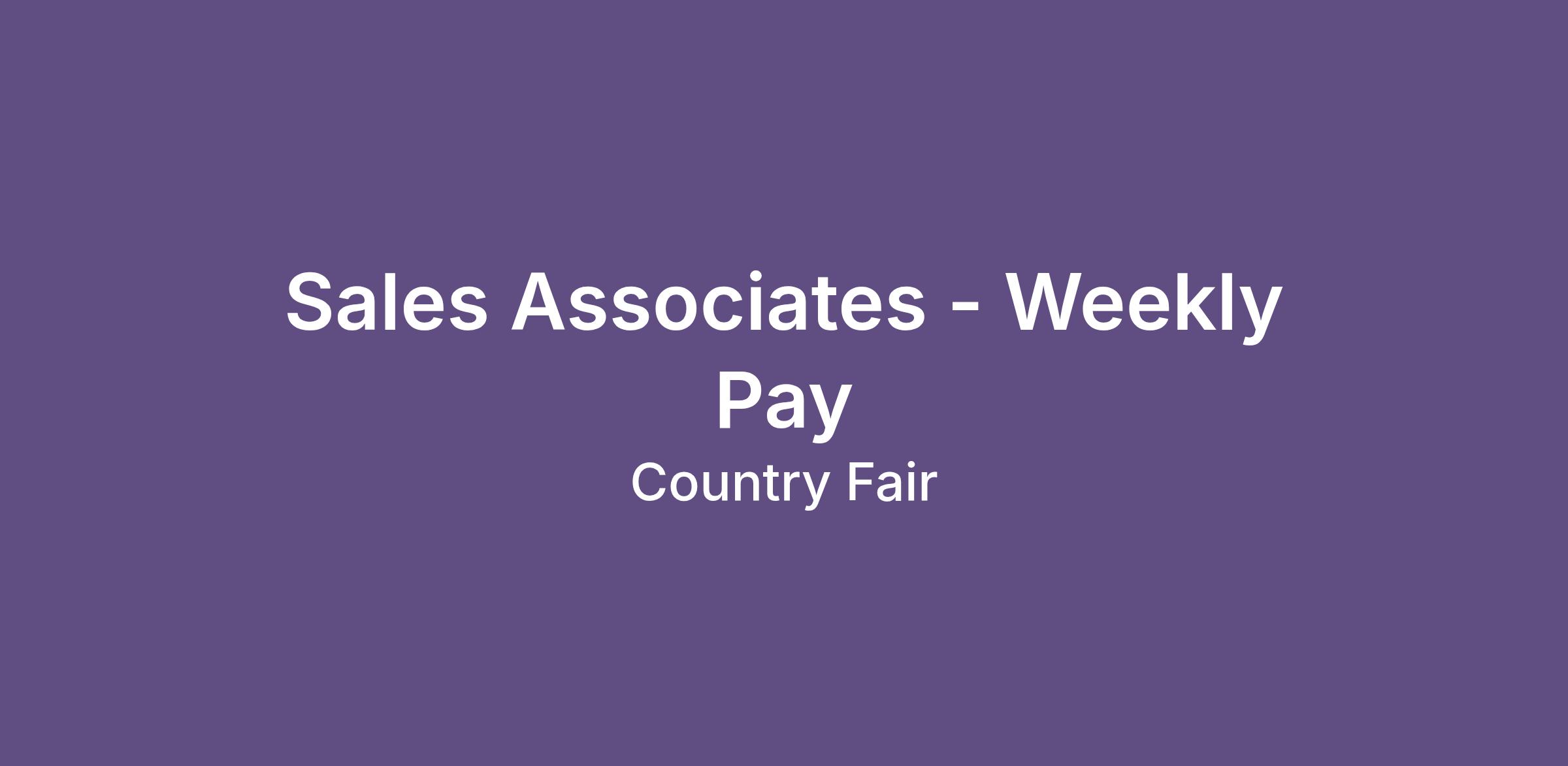 The most important people at Country Fair are the ones who serve our customers on a day to day basis.  That’s not just our belief; that’s our way of life.  Sales Associates are our first contact with our valued customers and perform a wide variety of duties to deliver on our mission statement: “Country Fair Cares - about its Customers, its Team and its Community.” Our mission, combined with an excellent culture for training, has garnered us recognition as "Best Places to Work" on multiple occasions.
