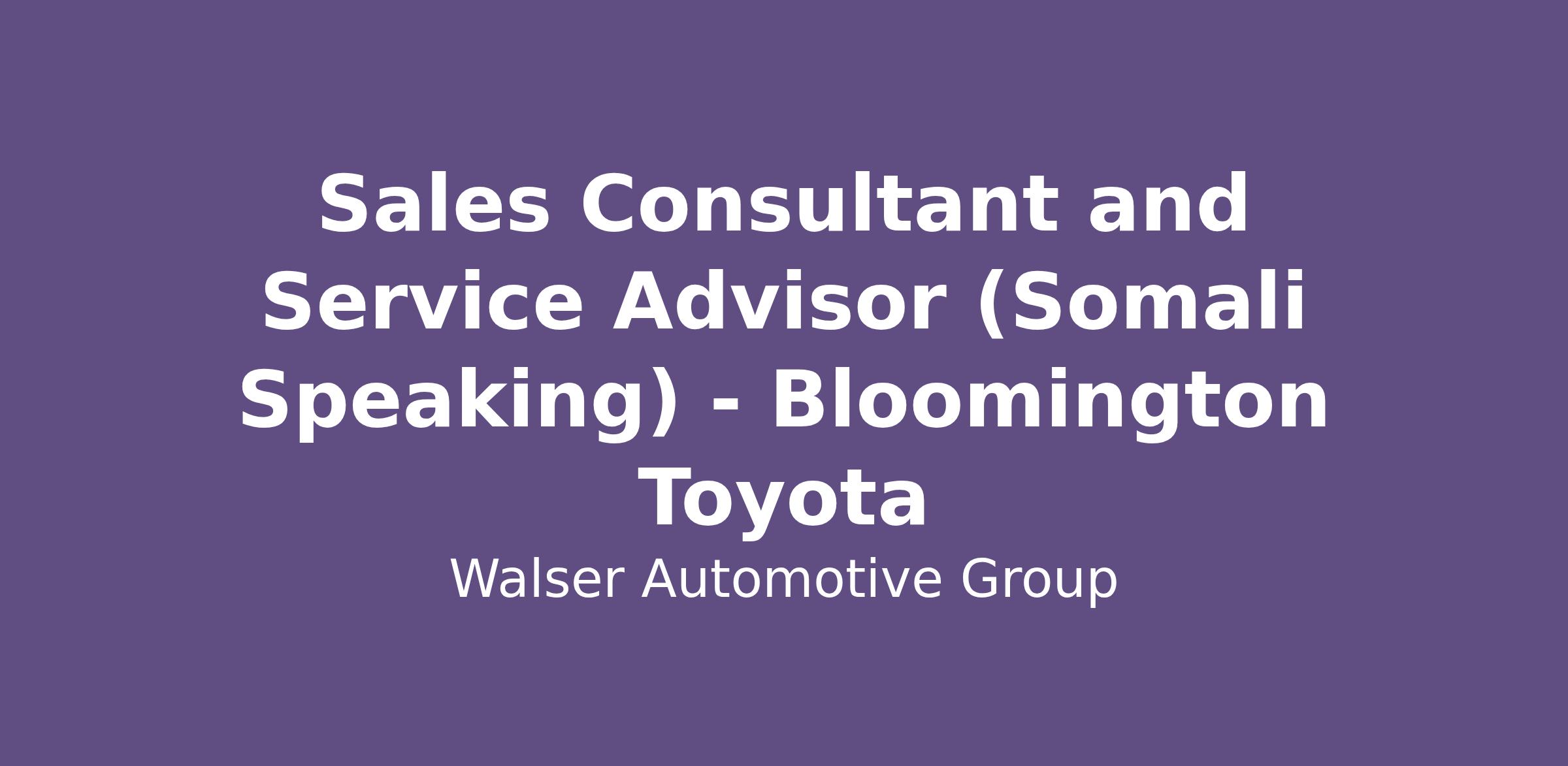 Sales Consultant and Service Advisor (Somali Speaking)