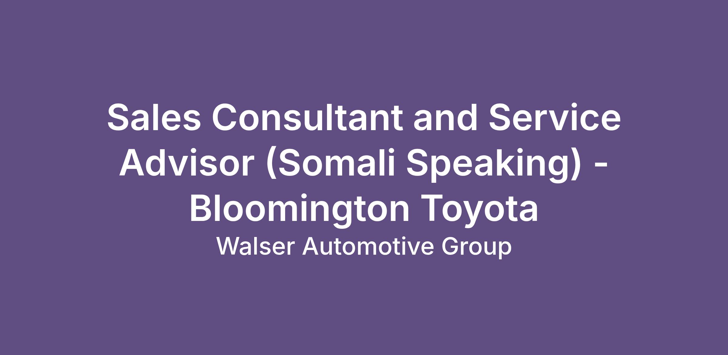 Sales Consultant and Service Advisor (Somali Speaking)