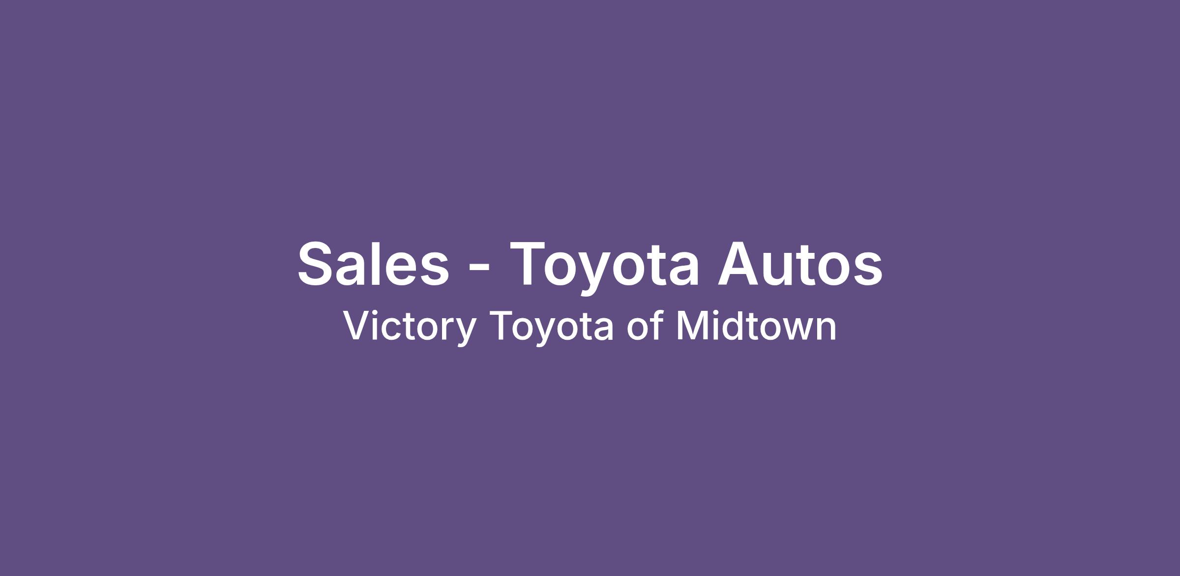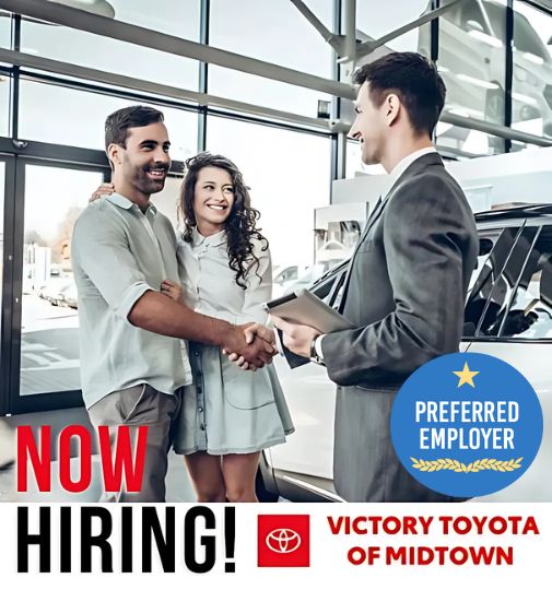 Victory Toyota of Midtown needs to hire Sales Consultants immediately. Auto sales not needed but sales background or management preferred.