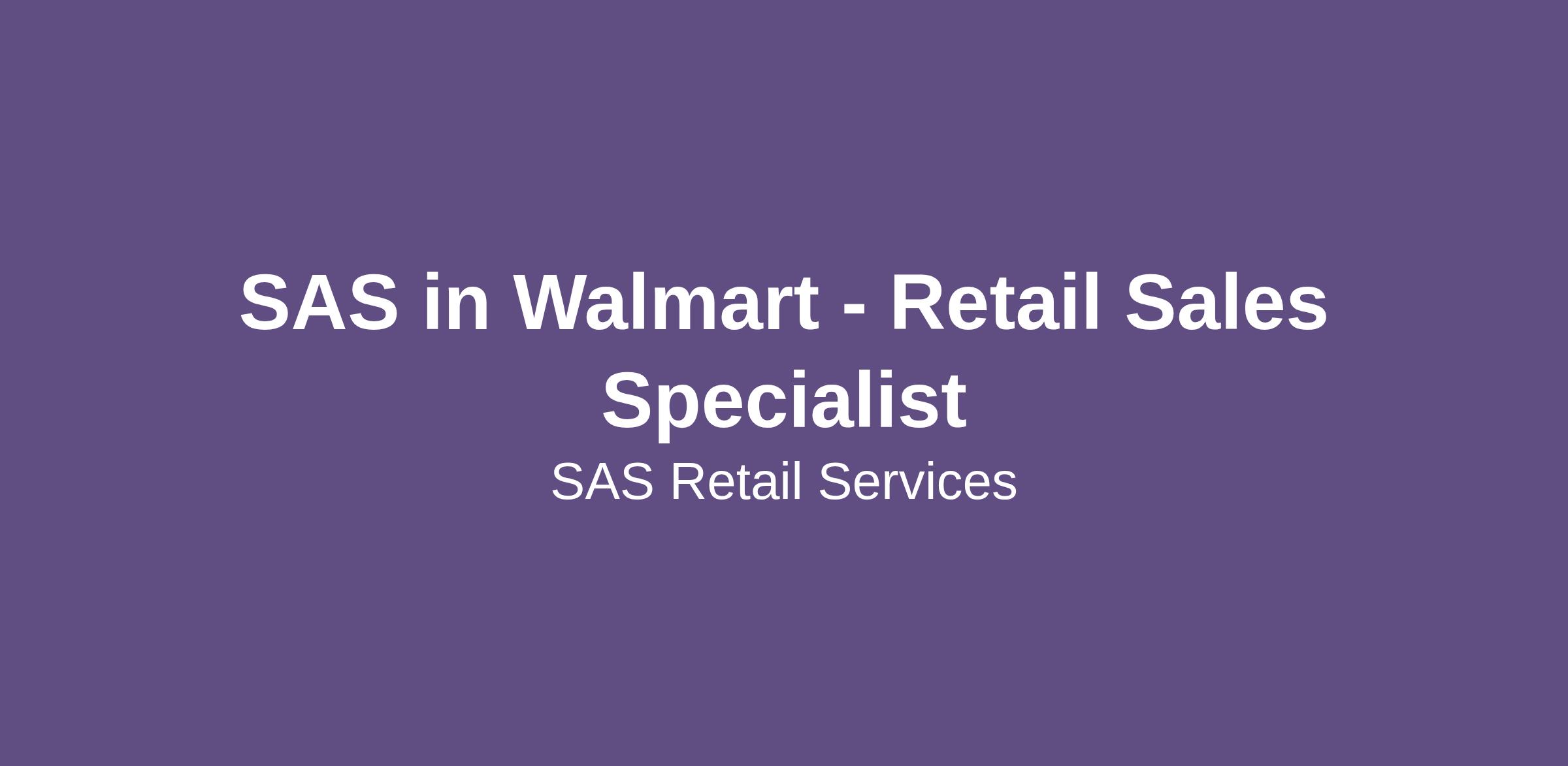 SAS in Walmart - Retail Sales Specialist