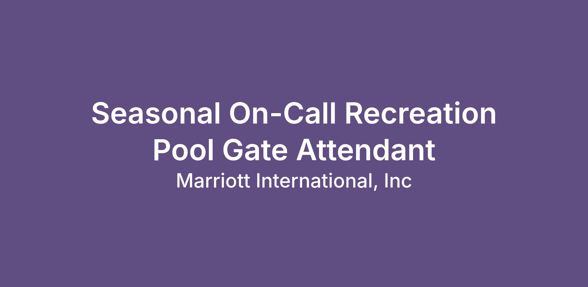 Seasonal On-Call Recreation Pool Gate Attendant