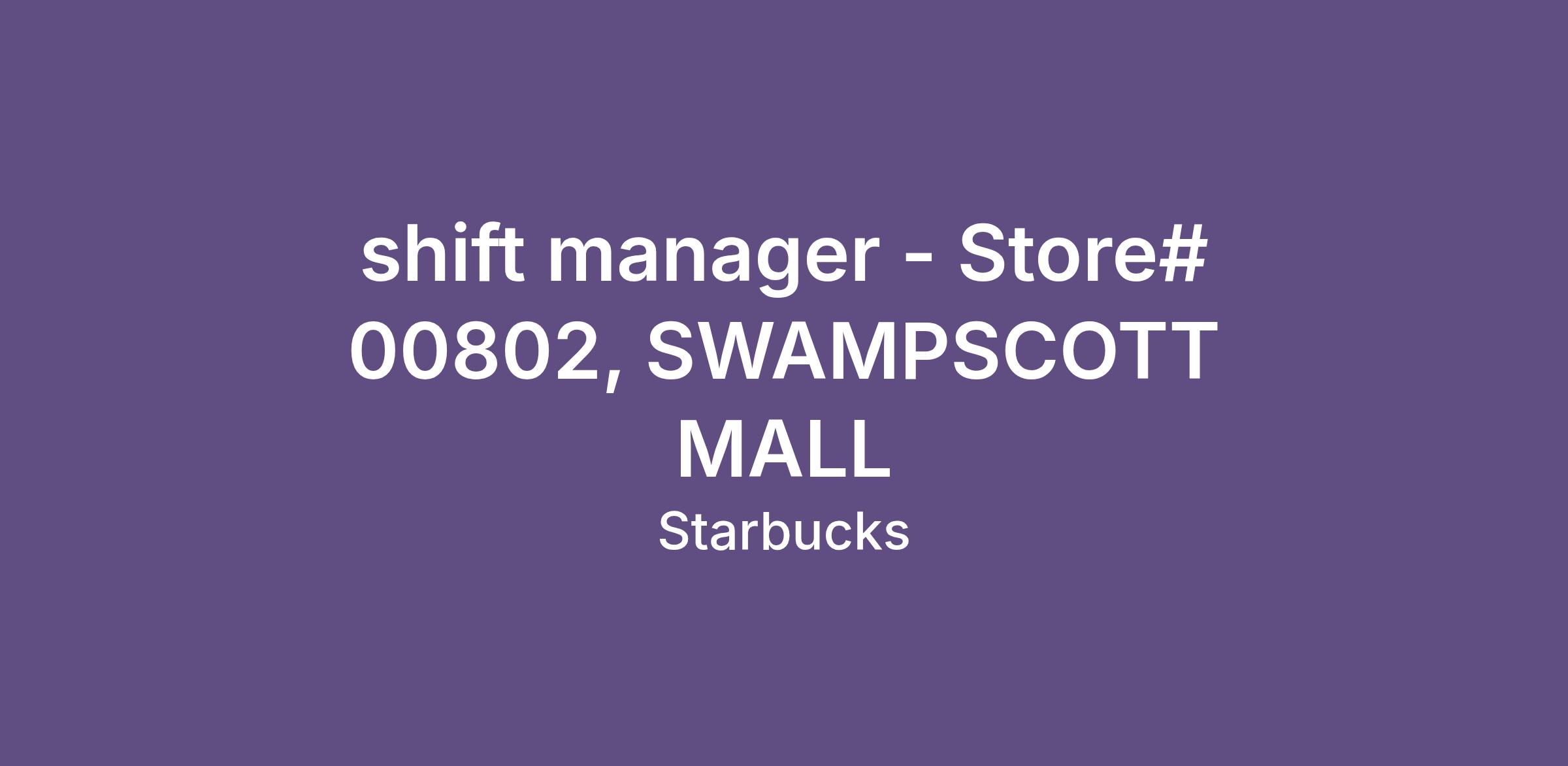 shift manager - Store# 00802, SWAMPSCOTT MALL