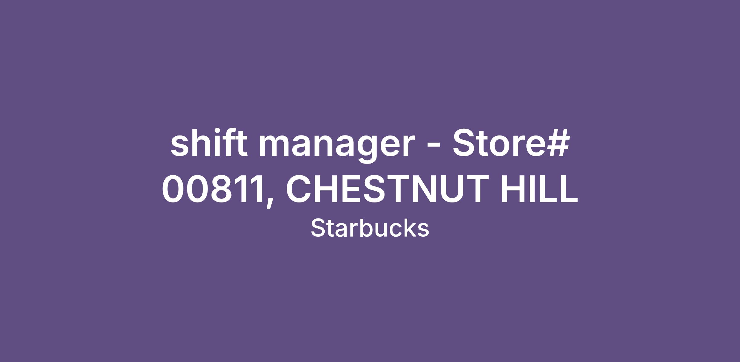 shift manager - Store# 00811, CHESTNUT HILL