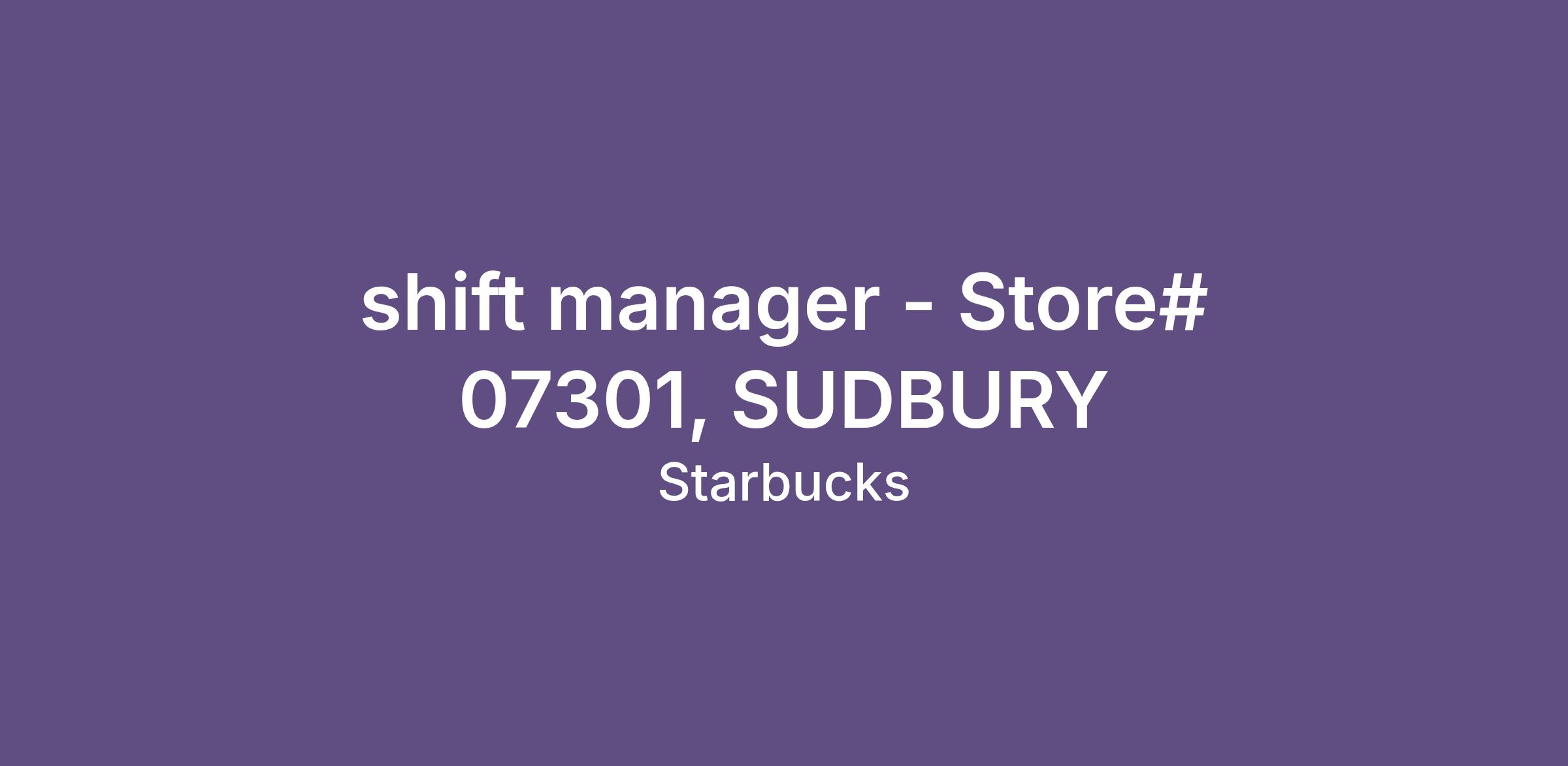 shift manager - Store# 07301, SUDBURY