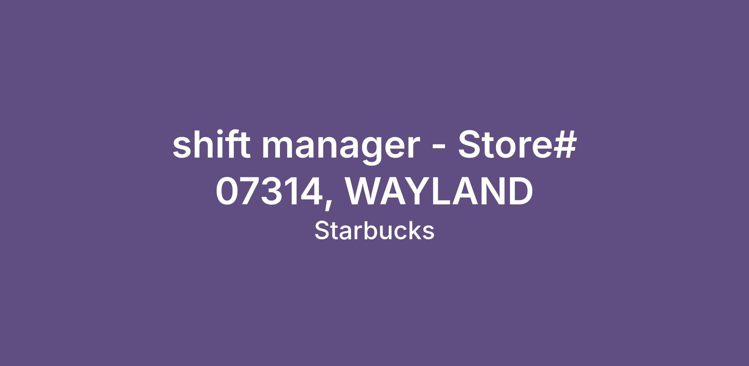 shift manager - Store# 07314, WAYLAND