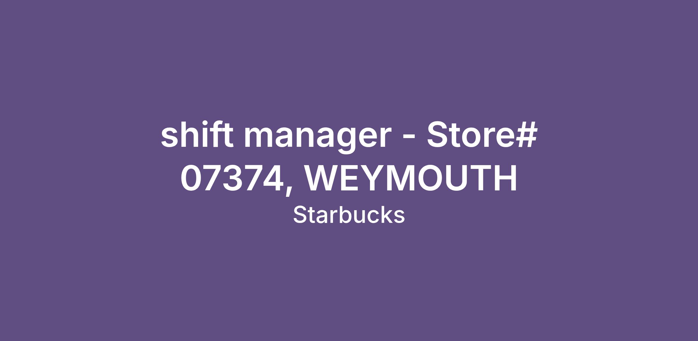 shift manager - Store# 07374, WEYMOUTH