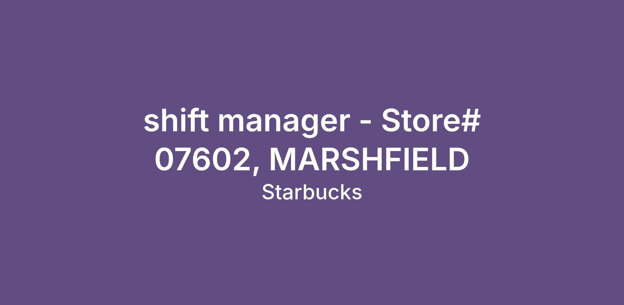 shift manager - Store# 07602, MARSHFIELD