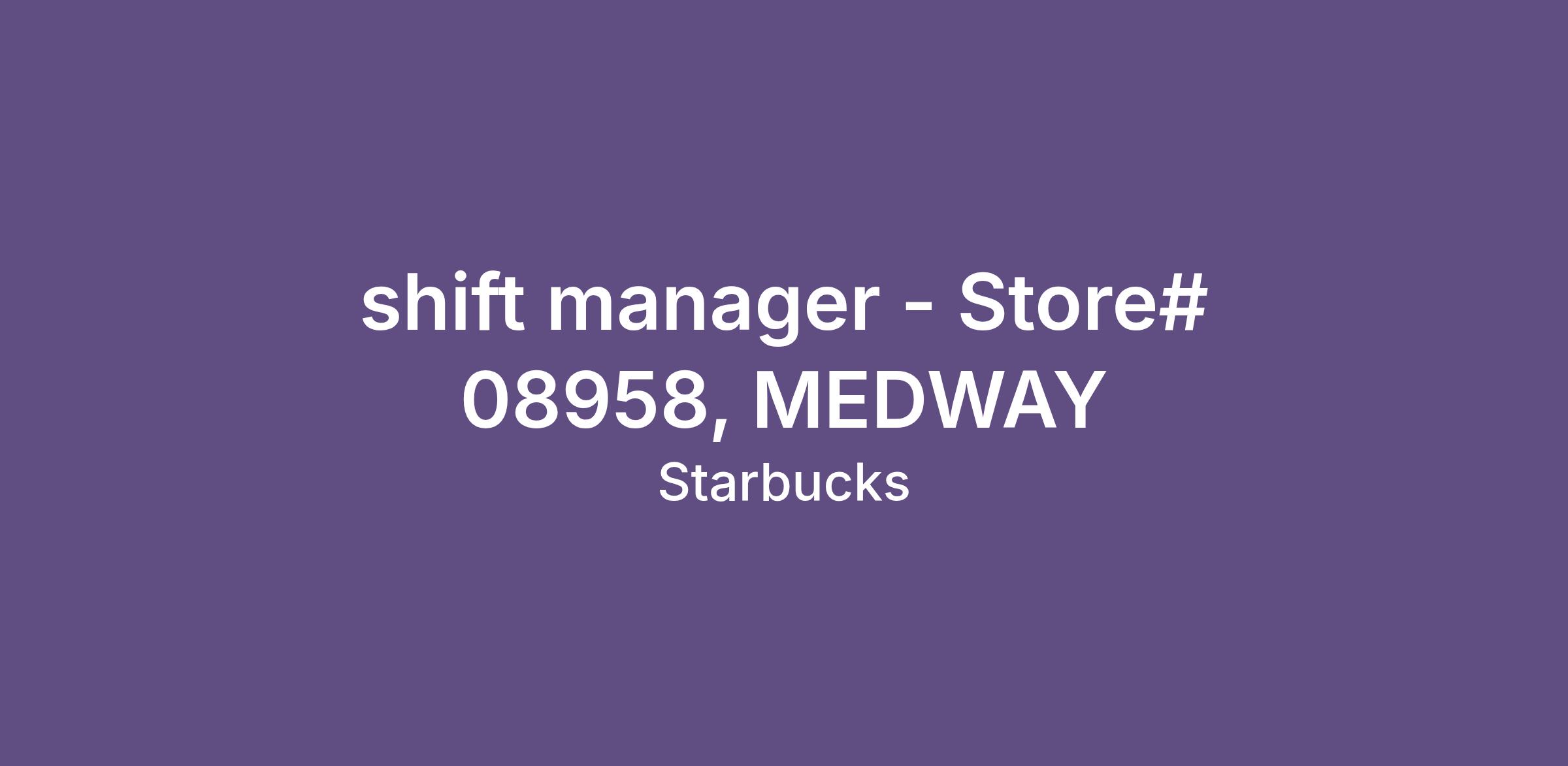 shift manager - Store# 08958, MEDWAY