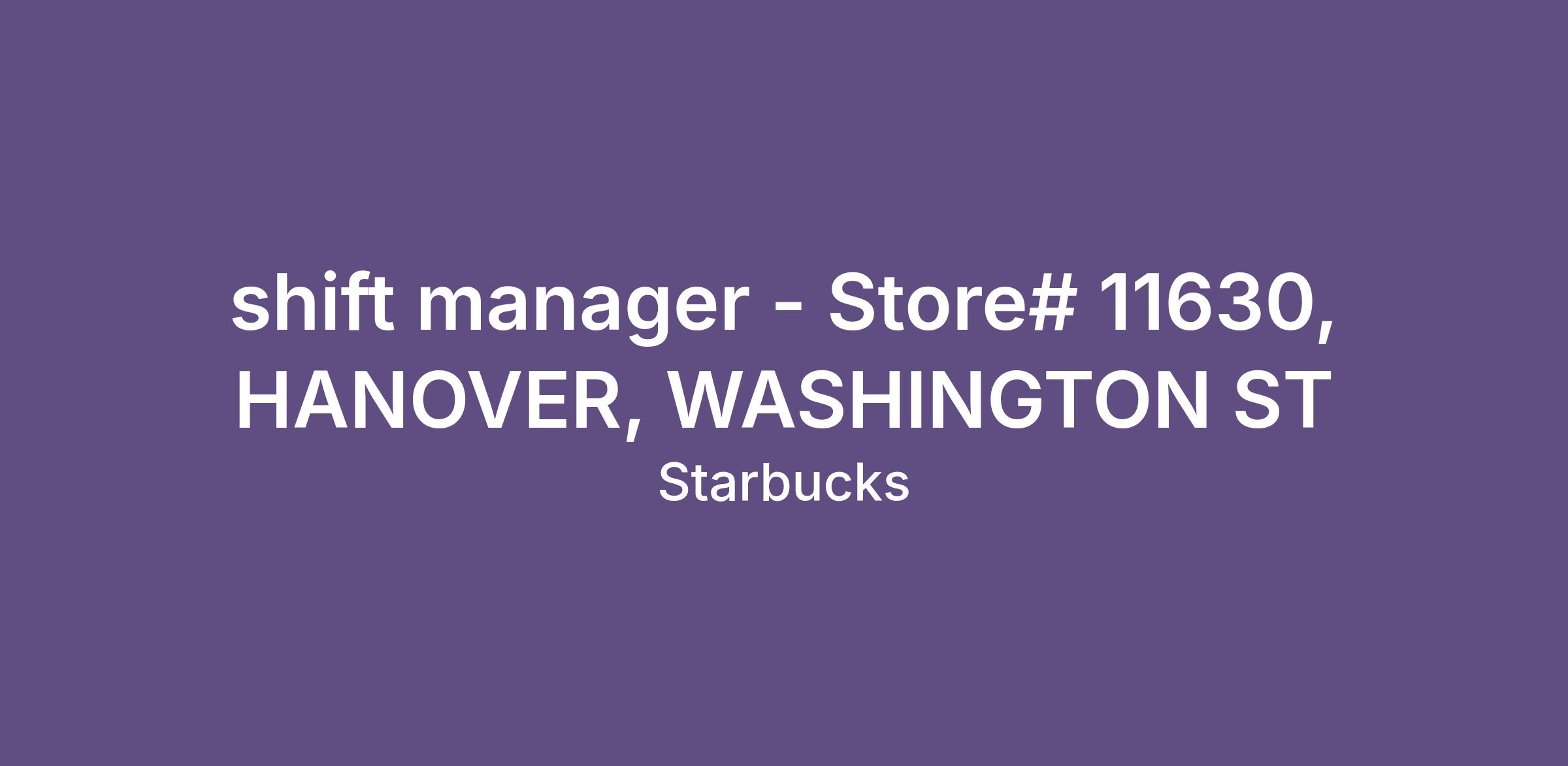 shift manager - Store# 11630, HANOVER, WASHINGTON ST