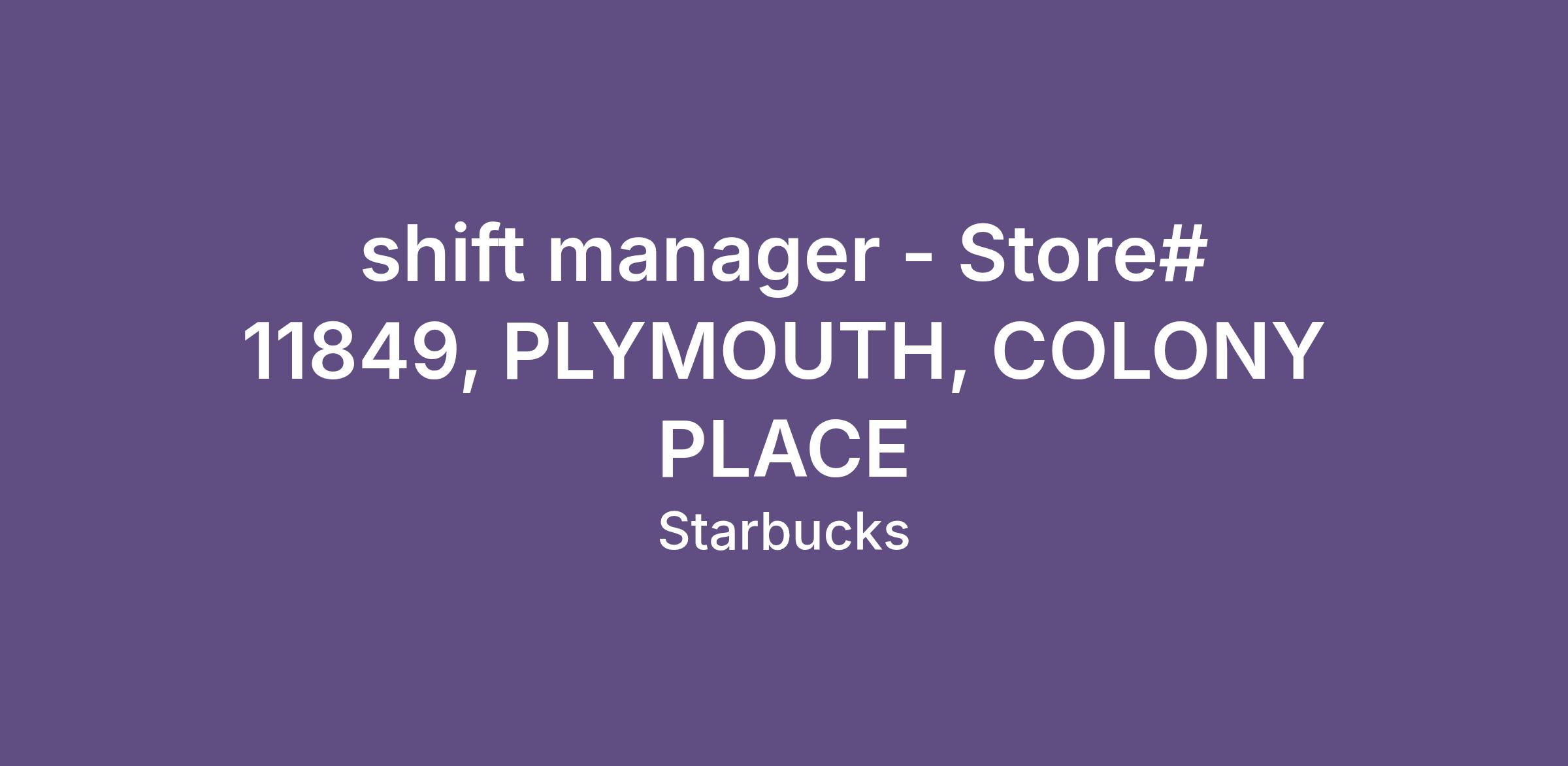 shift manager - Store# 11849, PLYMOUTH, COLONY PLACE