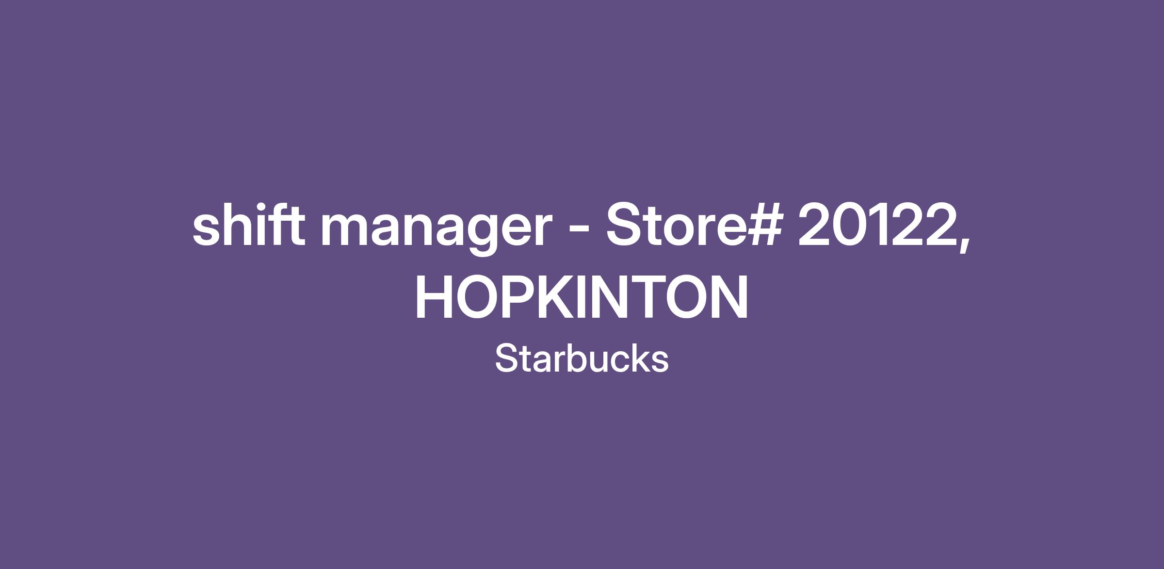 We believe in creating a warm and welcoming space where every cup of coffee sparks connection. Every shift is a chance to brighten someone’s day. As a shift manager you will lead with purpose and prepare for the next step in your Starbucks journey. Through hands-on experience, mentorship, and training, you’ll learn to run a multi-million dollar business, lead a team, and create a welcoming space for your community.