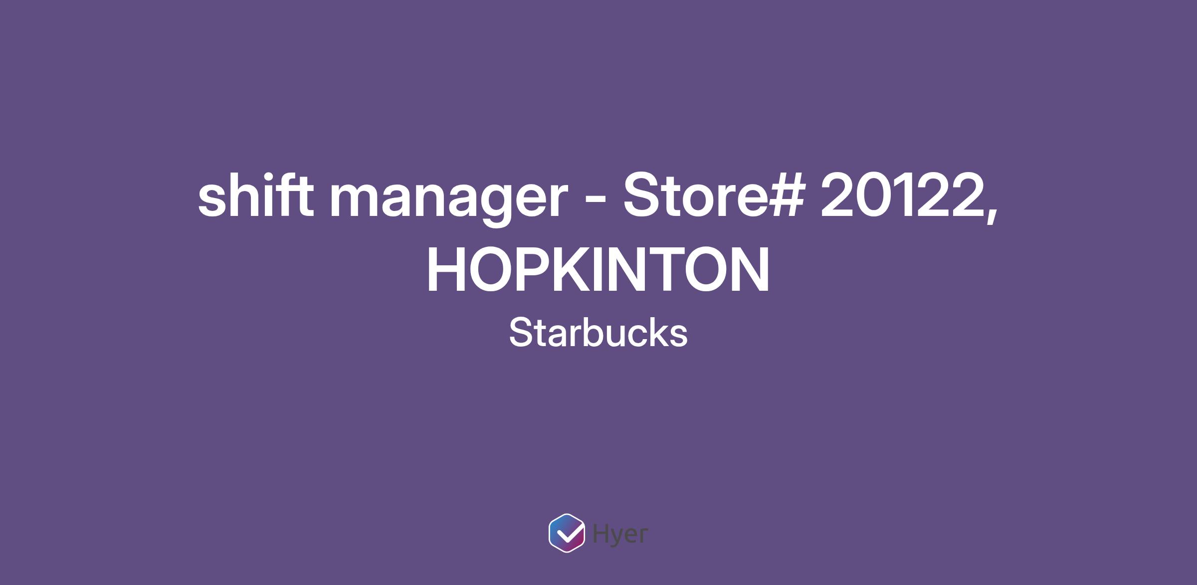 We believe in creating a warm and welcoming space where every cup of coffee sparks connection. Every shift is a chance to brighten someone’s day. As a shift manager you will lead with purpose and prepare for the next step in your Starbucks journey.  Through hands-on experience, mentorship, and training, you’ll learn to run a multi-million dollar business, lead a team, and create a welcoming space for your community.