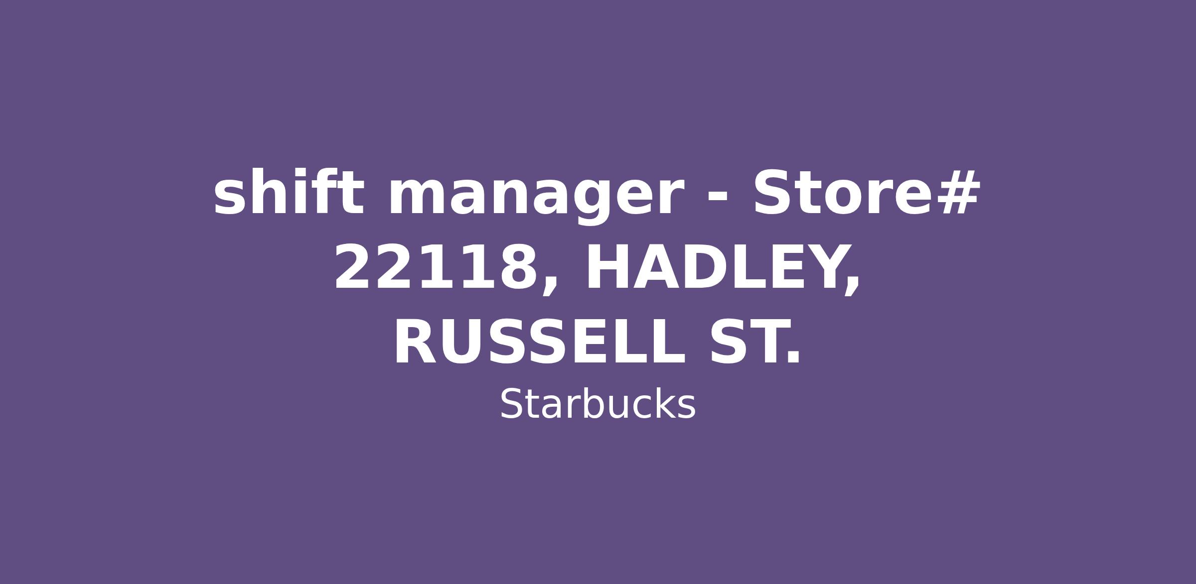 shift manager - Store# 22118, HADLEY, RUSSELL ST.