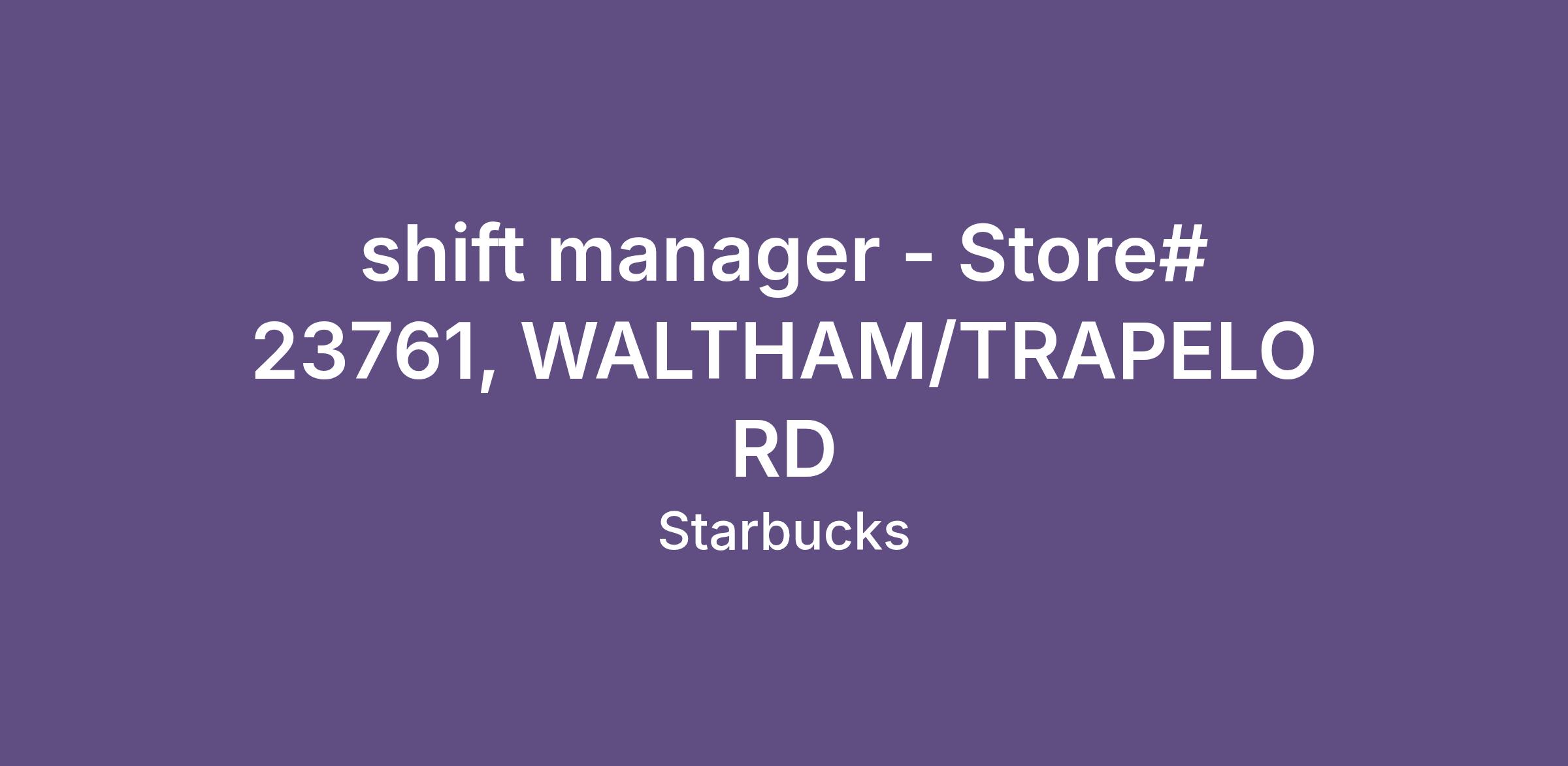 We believe in creating a warm and welcoming space where every cup of coffee sparks connection. Every shift is a chance to brighten someone’s day. As a shift manager you will lead with purpose and prepare for the next step in your Starbucks journey. Through hands-on experience, mentorship, and training, you’ll learn to run a multi-million dollar business, lead a team, and create a welcoming space for your community.