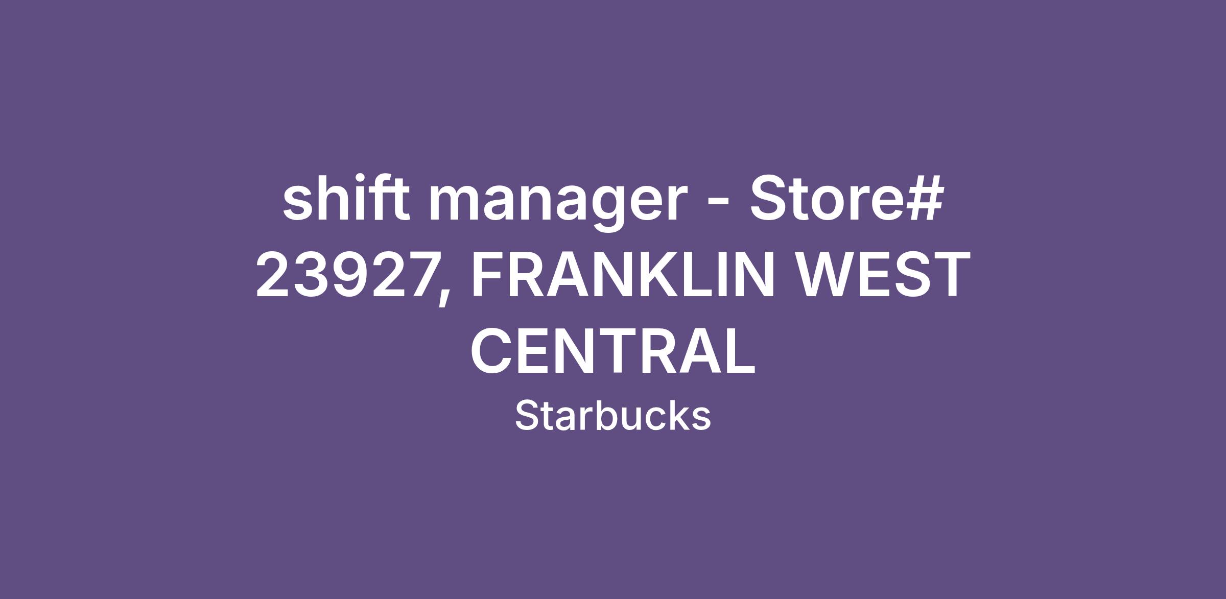 shift manager - Store# 23927, FRANKLIN WEST CENTRAL