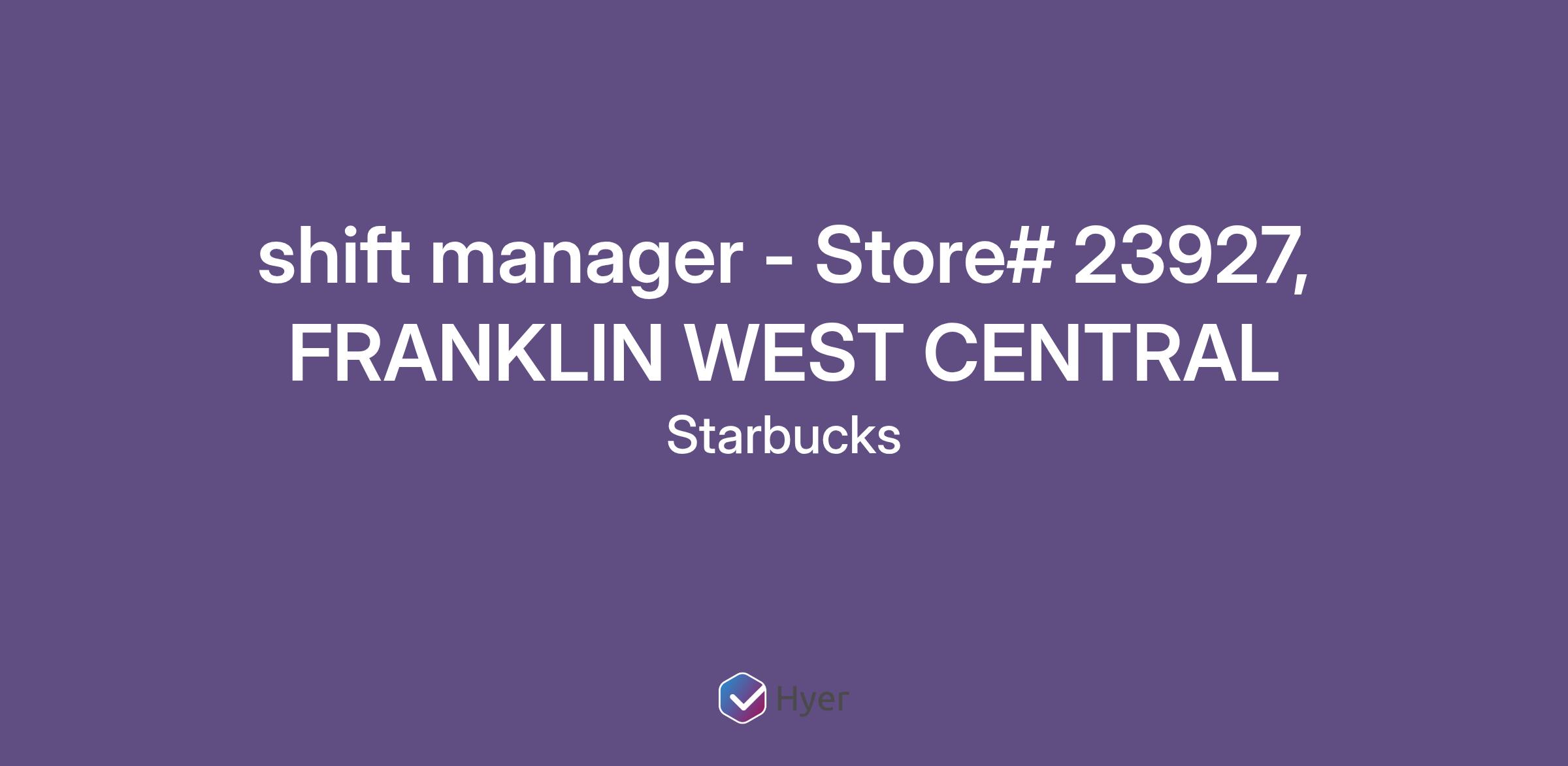 shift manager - Store# 23927, FRANKLIN WEST CENTRAL