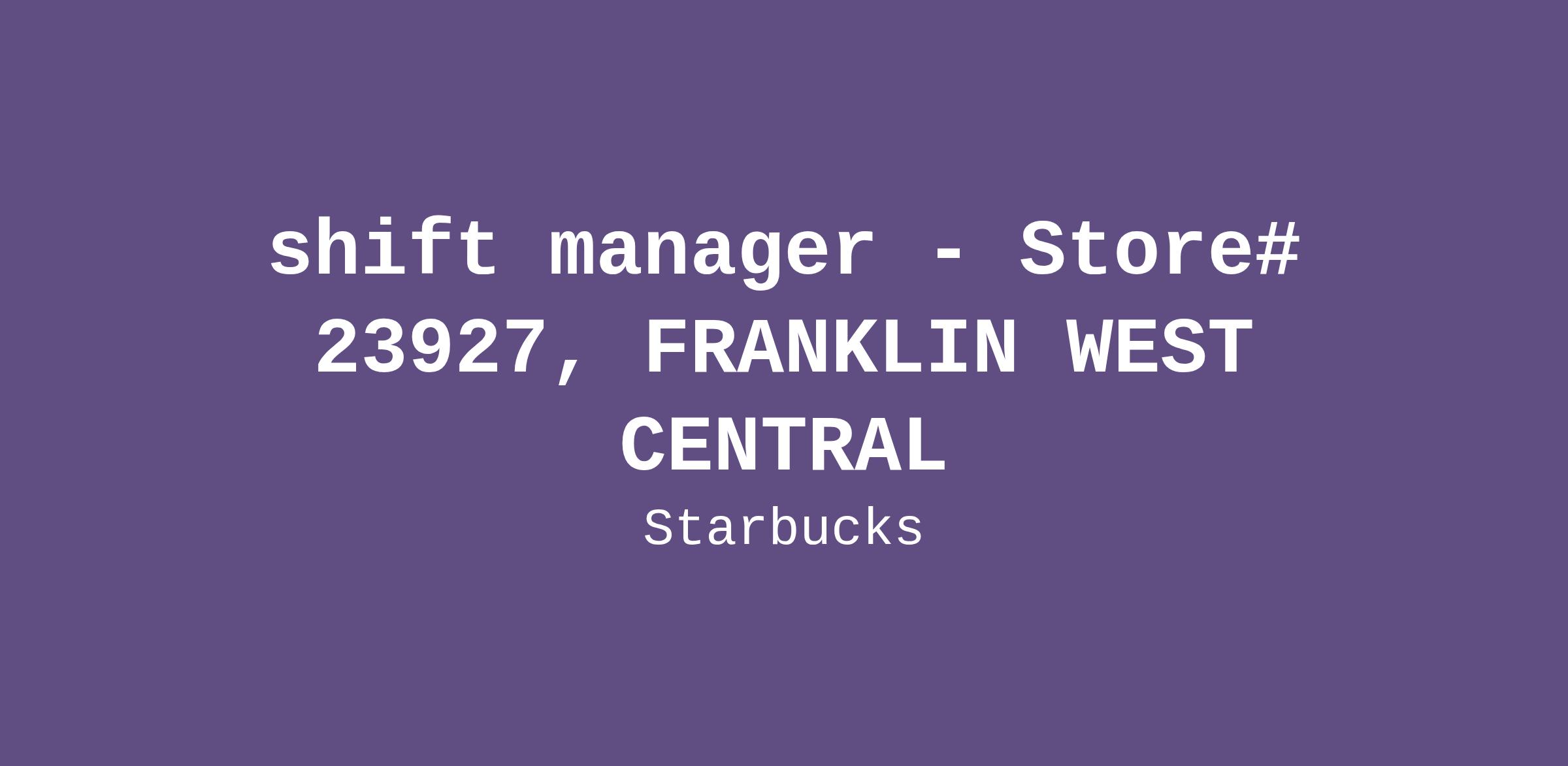 shift manager - Store# 23927, FRANKLIN WEST CENTRAL