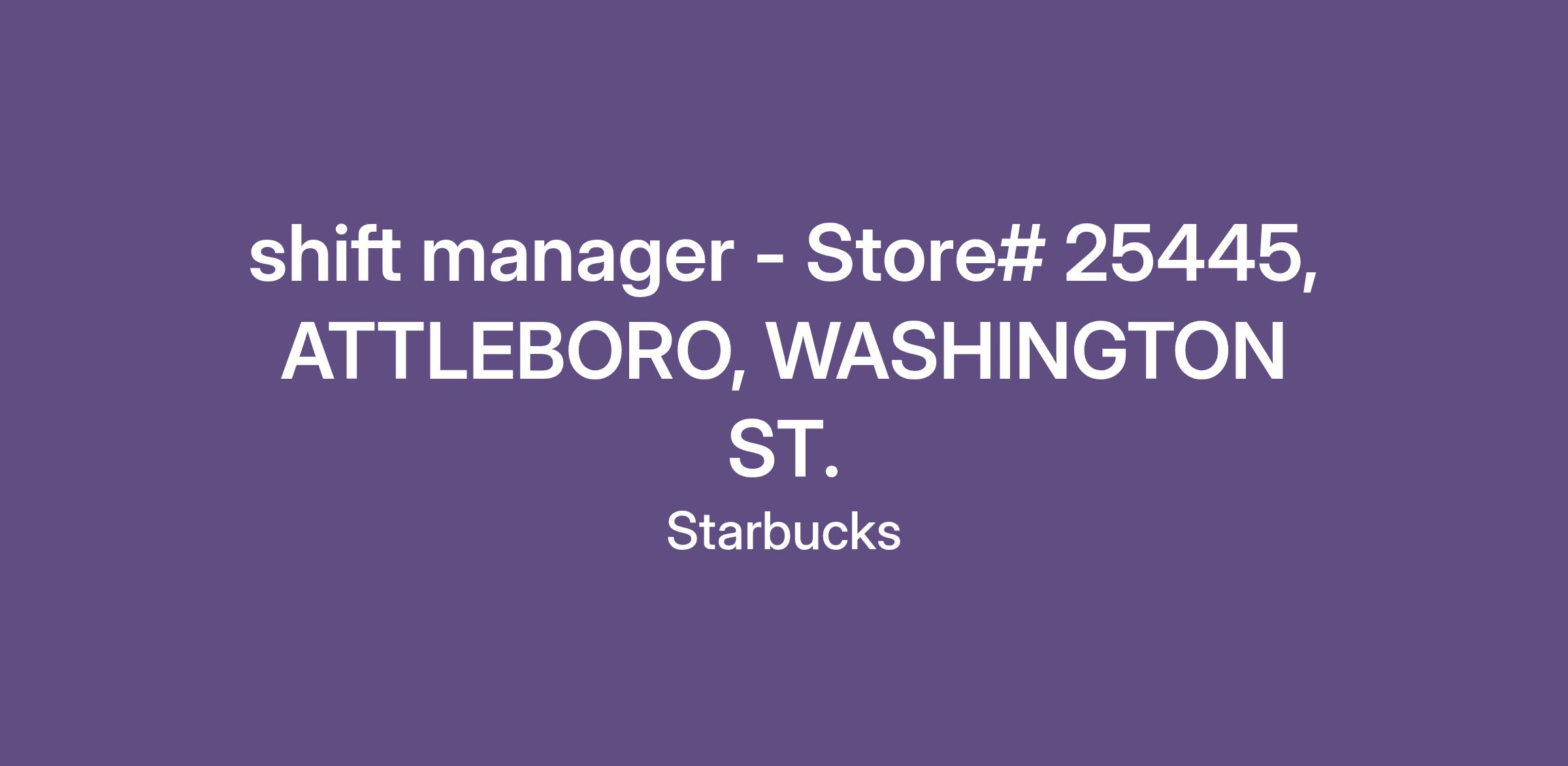 We believe in creating a warm and welcoming space where every cup of coffee sparks connection. Every shift is a chance to brighten someone’s day. As a shift manager you will lead with purpose and prepare for the next step in your Starbucks journey. Through hands-on experience, mentorship, and training, you’ll learn to run a multi-million dollar business, lead a team, and create a welcoming space for your community.