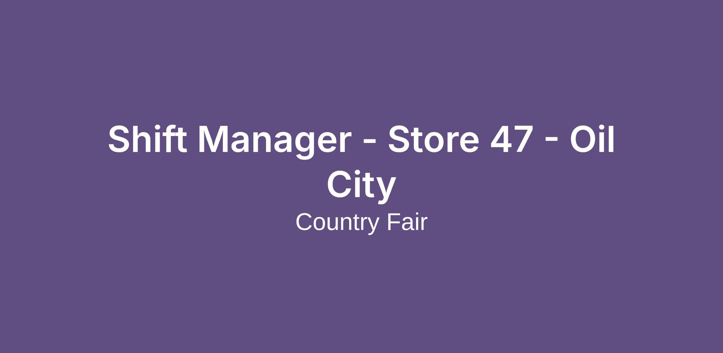Shift Manager - Store 47 - Oil City