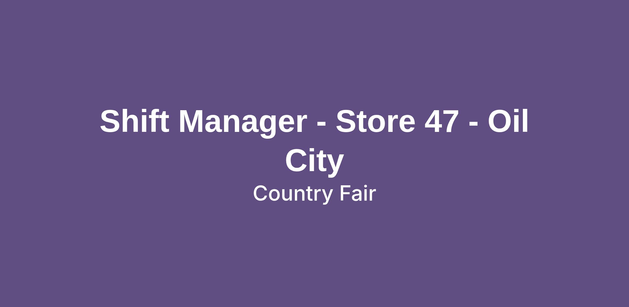 Shift Manager - Store 47 - Oil City