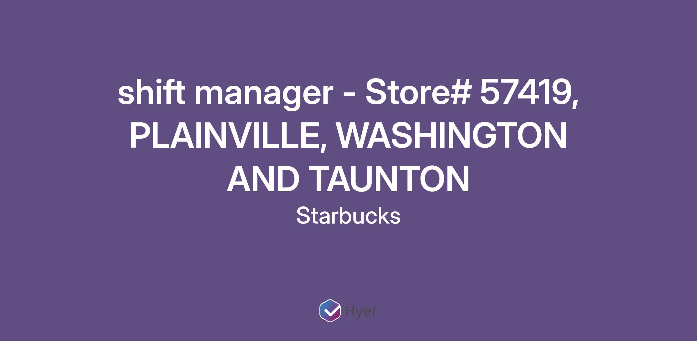 shift manager - Store# 57419, PLAINVILLE, WASHINGTON AND TAUNTON